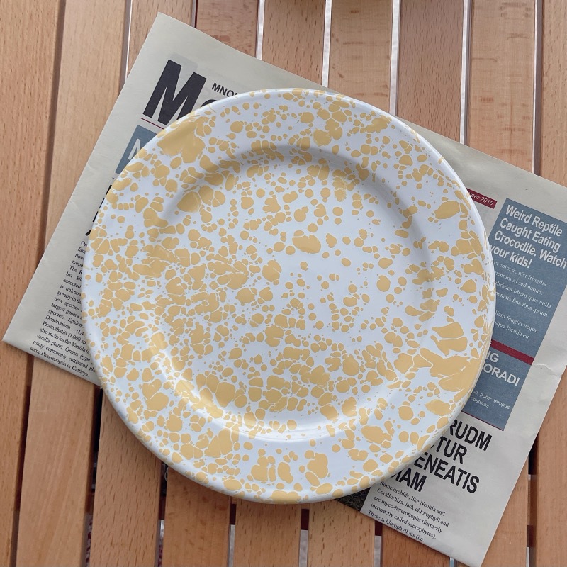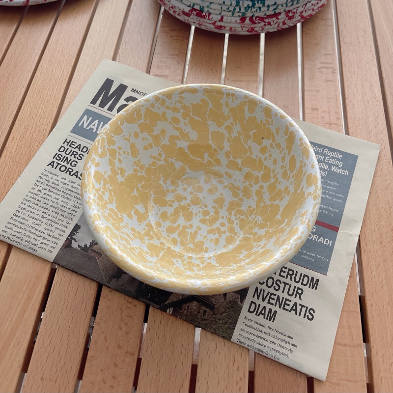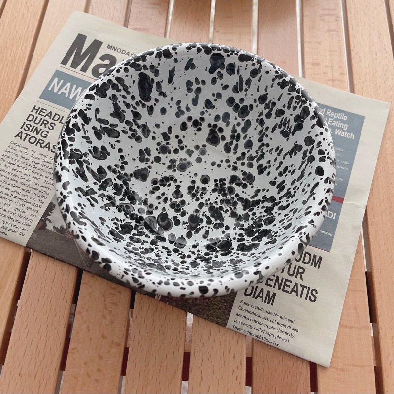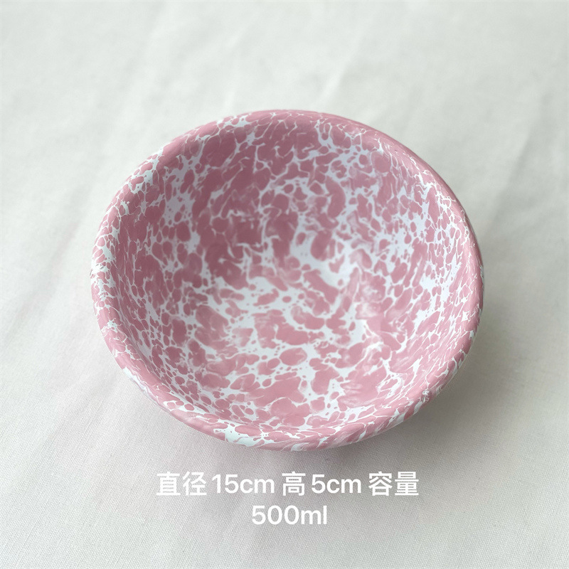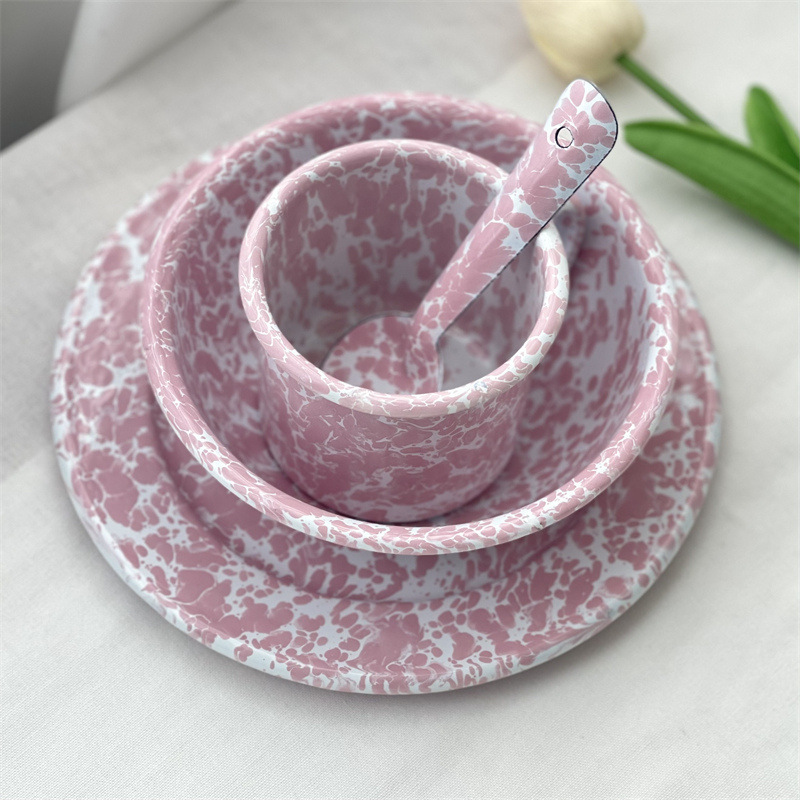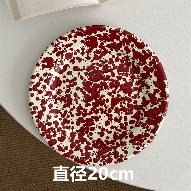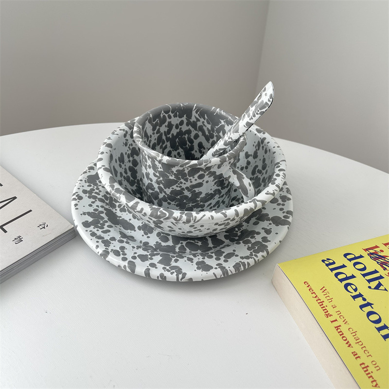 뜨거운 판매 한국 스타일 in 스타일 스플래시 잉크 에나멜 베이비 블루 시리얼 오트밀 과일 샐러드 그릇 그물 레드 머그 플랫 플레이트