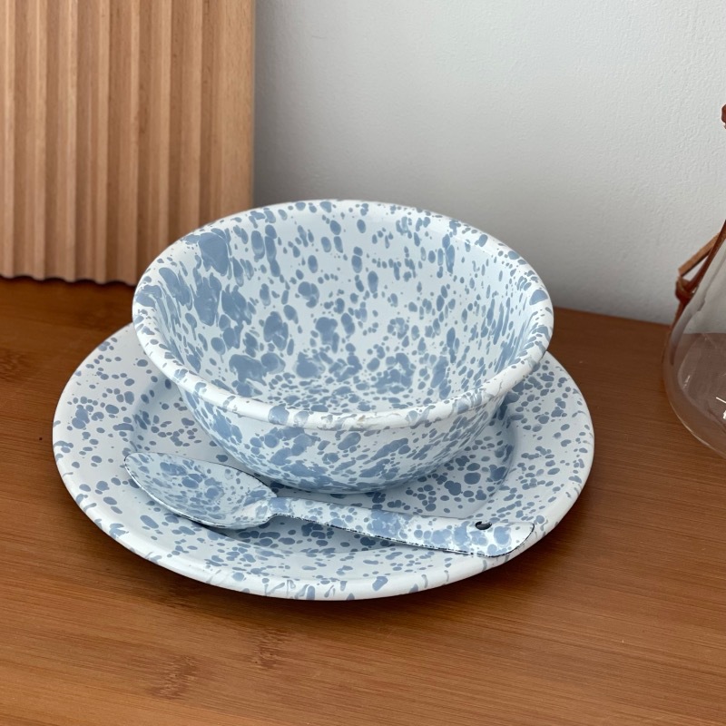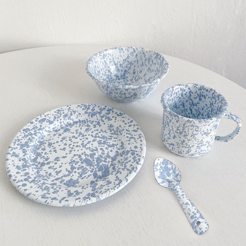 뜨거운 판매 한국 스타일 in 스타일 스플래시 잉크 에나멜 베이비 블루 시리얼 오트밀 과일 샐러드 그릇 그물 레드 머그 플랫 플레이트스토어 가기