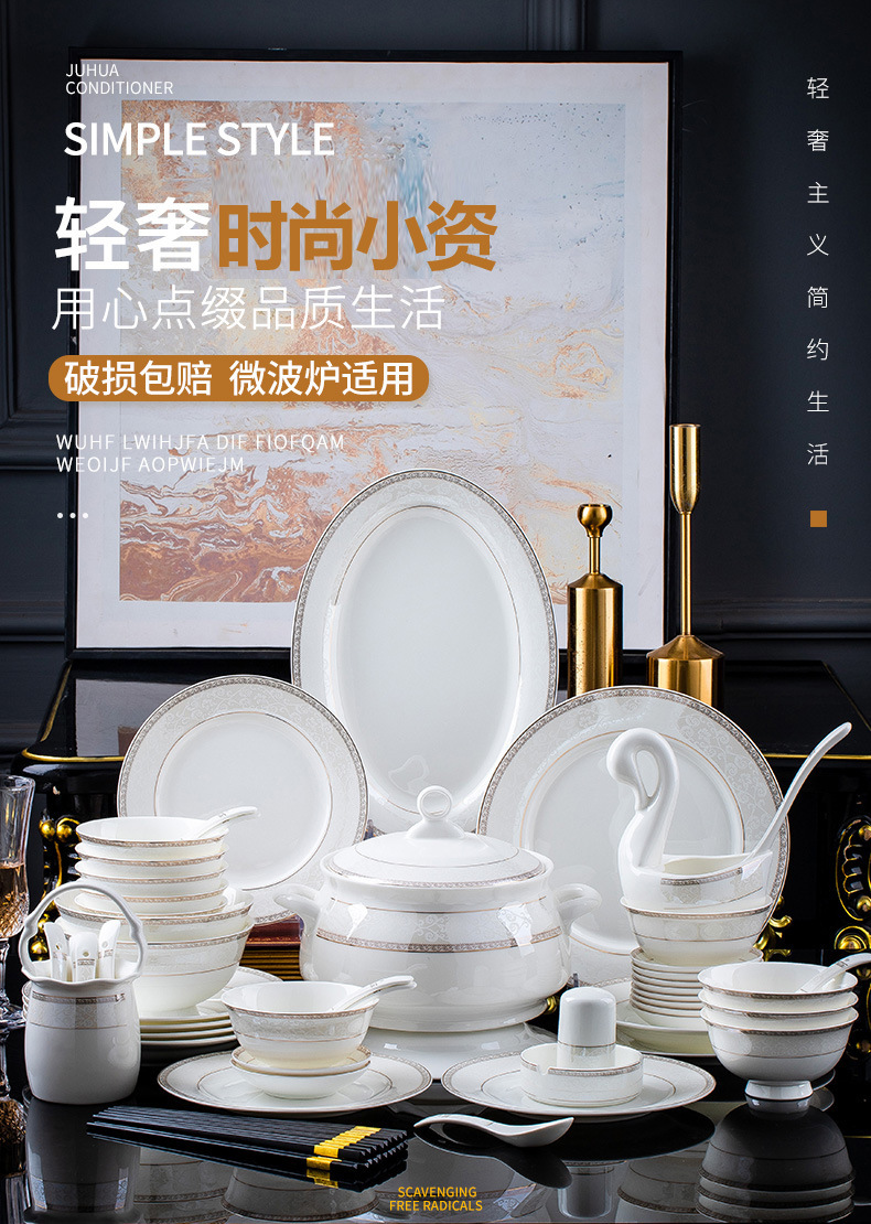 경덕진 도자기 그릇 가정용 그릇 세트 인스 스타일 패셔너블한 소중산층용 본차이나 그릇 세트 국수 그릇 도자기 생선 접시 DIY 선택 가능