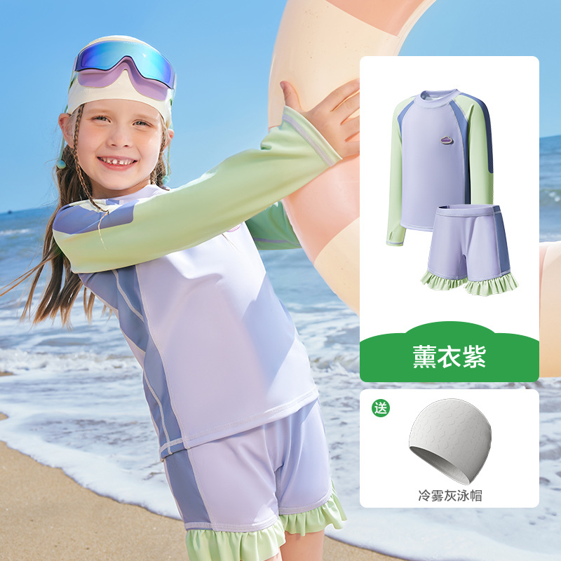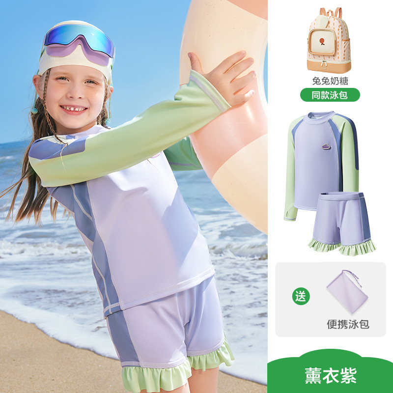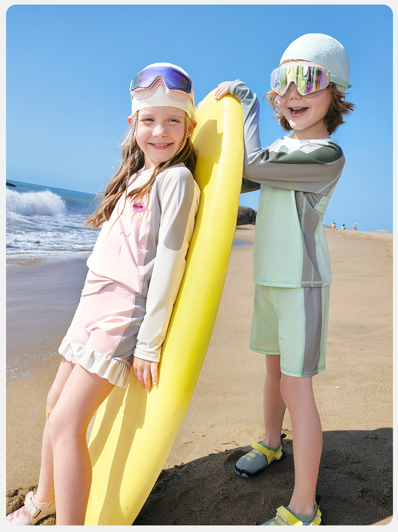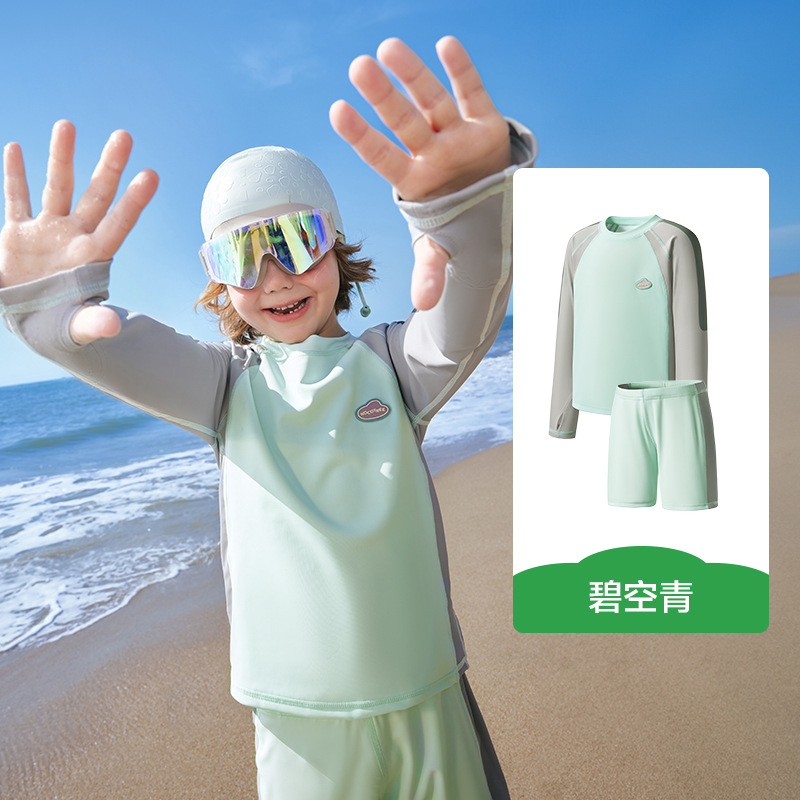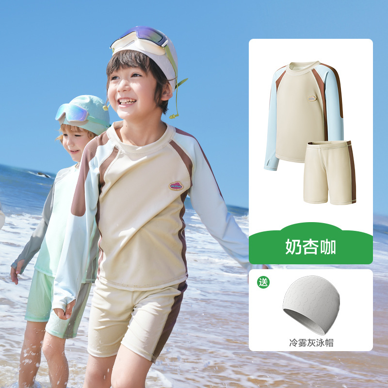 KK 트리 어린이 수영복 소년 소녀 분할 긴 소매 수영복 베이비 비치 태양 보호 온천 세트