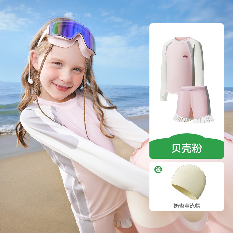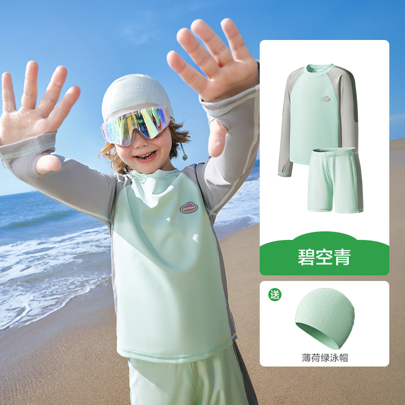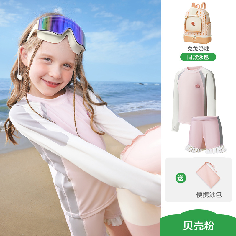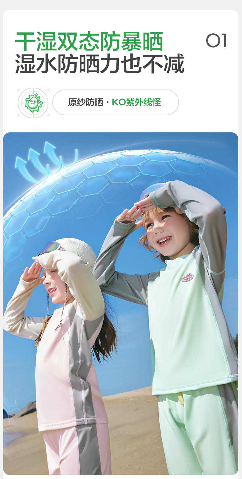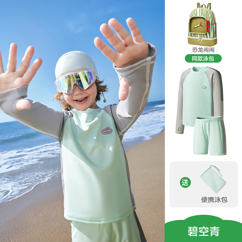 KK 트리 어린이 수영복 소년 소녀 분할 긴 소매 수영복 베이비 비치 태양 보호 온천 세트