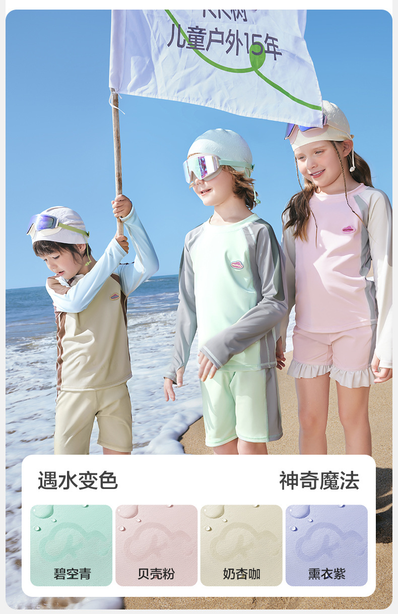 KK 트리 어린이 수영복 소년 소녀 분할 긴 소매 수영복 베이비 비치 태양 보호 온천 세트스토어 가기