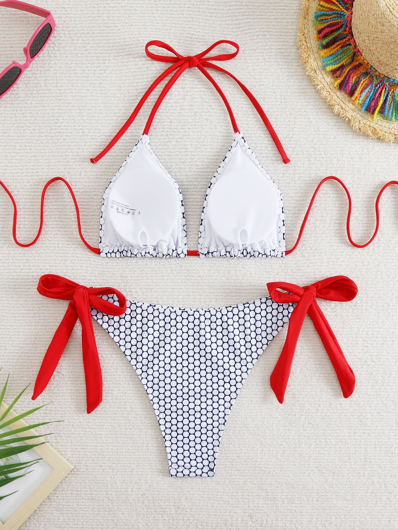 유럽과 미국의 새로운 스타일 여성 수영복, 고급 망사 투피스 섹시 홀터넥 끈 비키니 해변 수영복