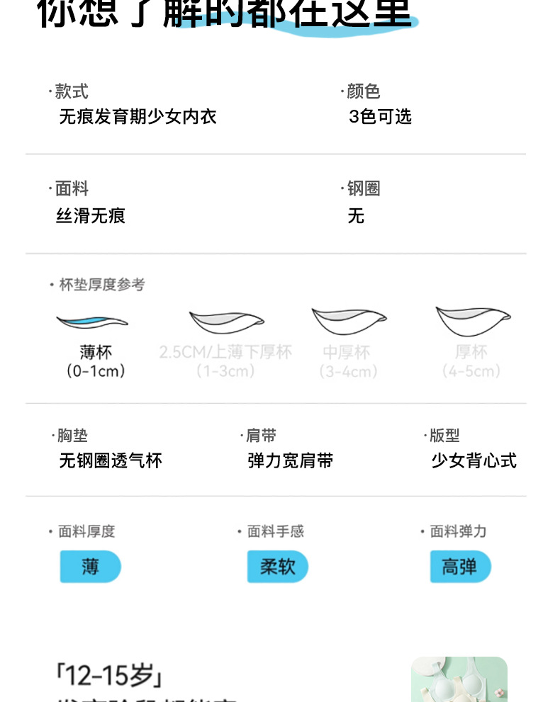 여자 발달 속옷 학생 중학교 고등학교 8-18 세 Traceless 아름다운 등 통기성 편안한 고정 컵 브라