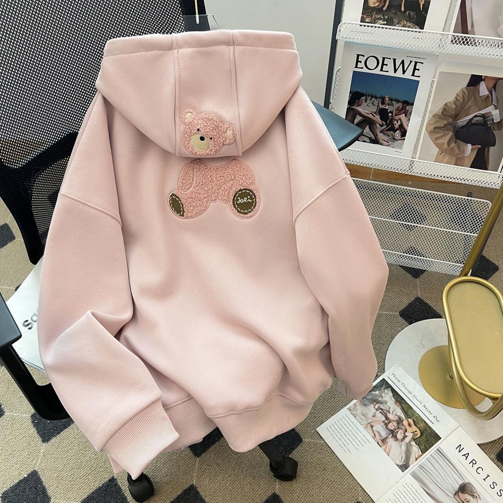 소녀들의 봄 땀 2025 새로운 소녀들의 봄과 가을 한국 스타일 자수 달콤한 자수 후드 캐주얼 탑스토어 가기