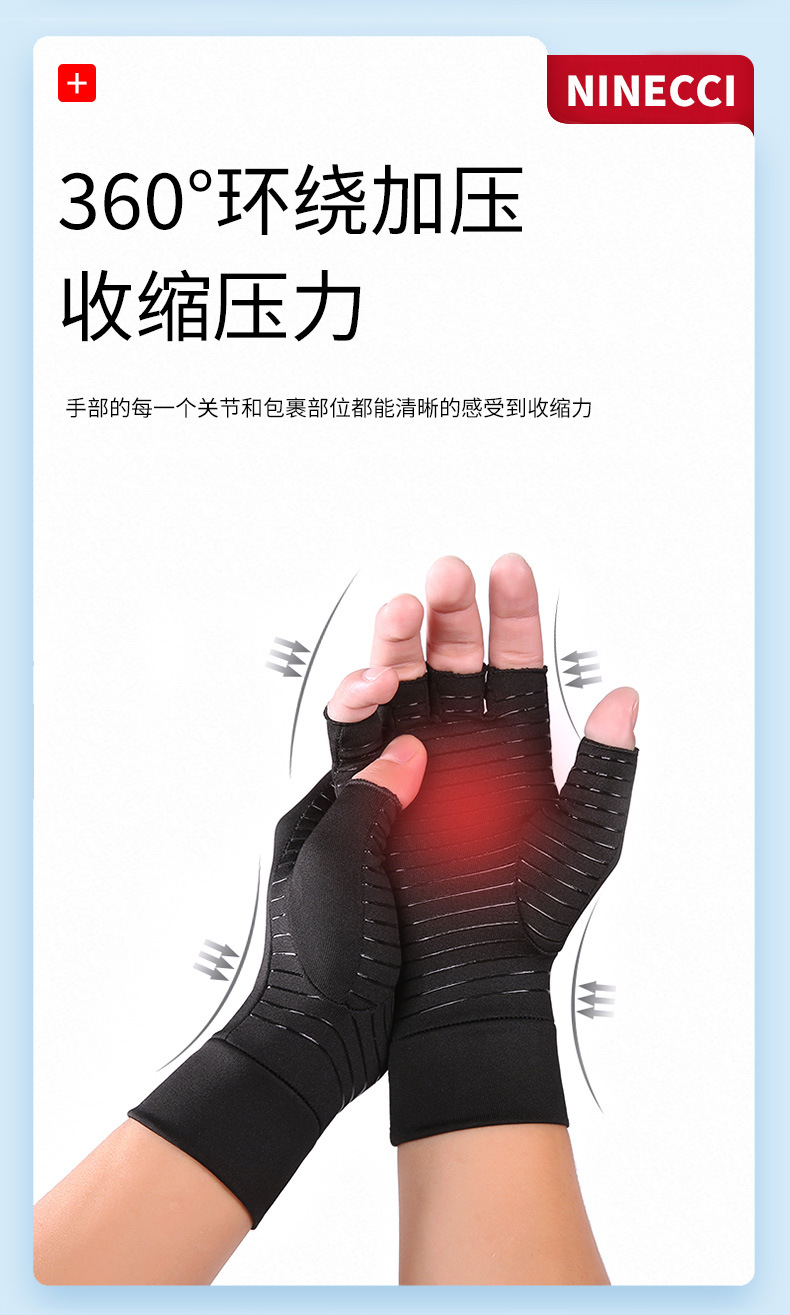 여름 반손가락 탄력 미끄럼 방지 사이클링 스포츠 피트니스 장갑 구리 이온 오픈 핑거 압박 장갑 아마존 나일론