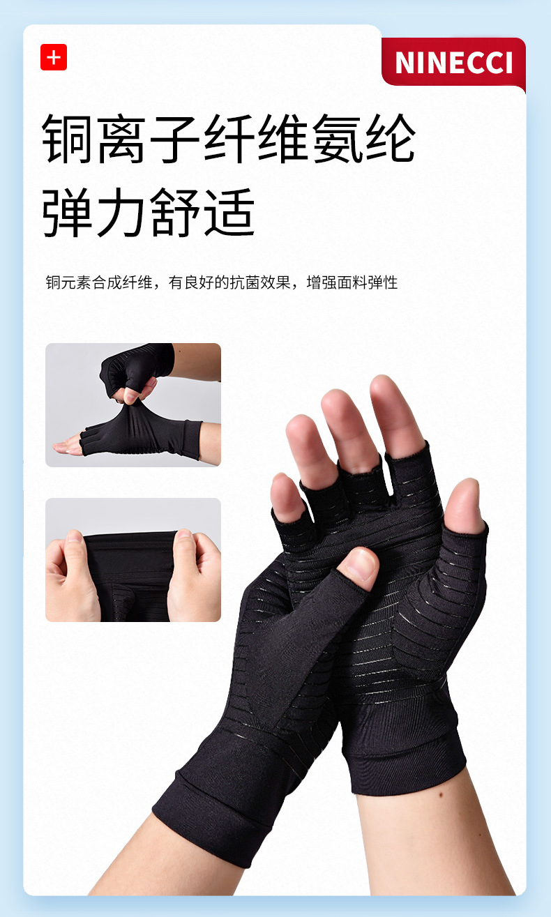여름 반손가락 탄력 미끄럼 방지 사이클링 스포츠 피트니스 장갑 구리 이온 오픈 핑거 압박 장갑 아마존 나일론스토어 가기