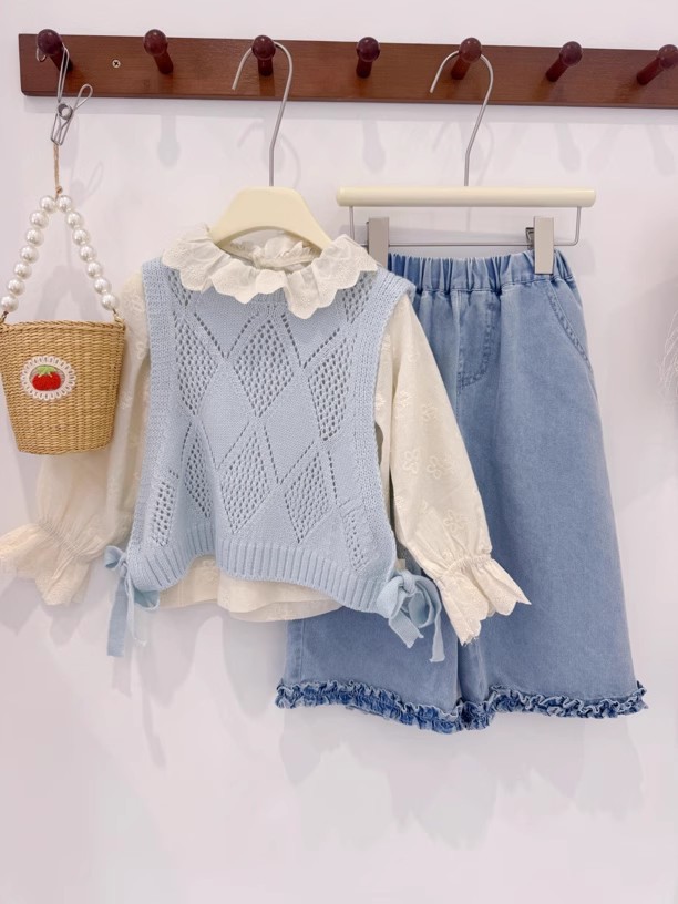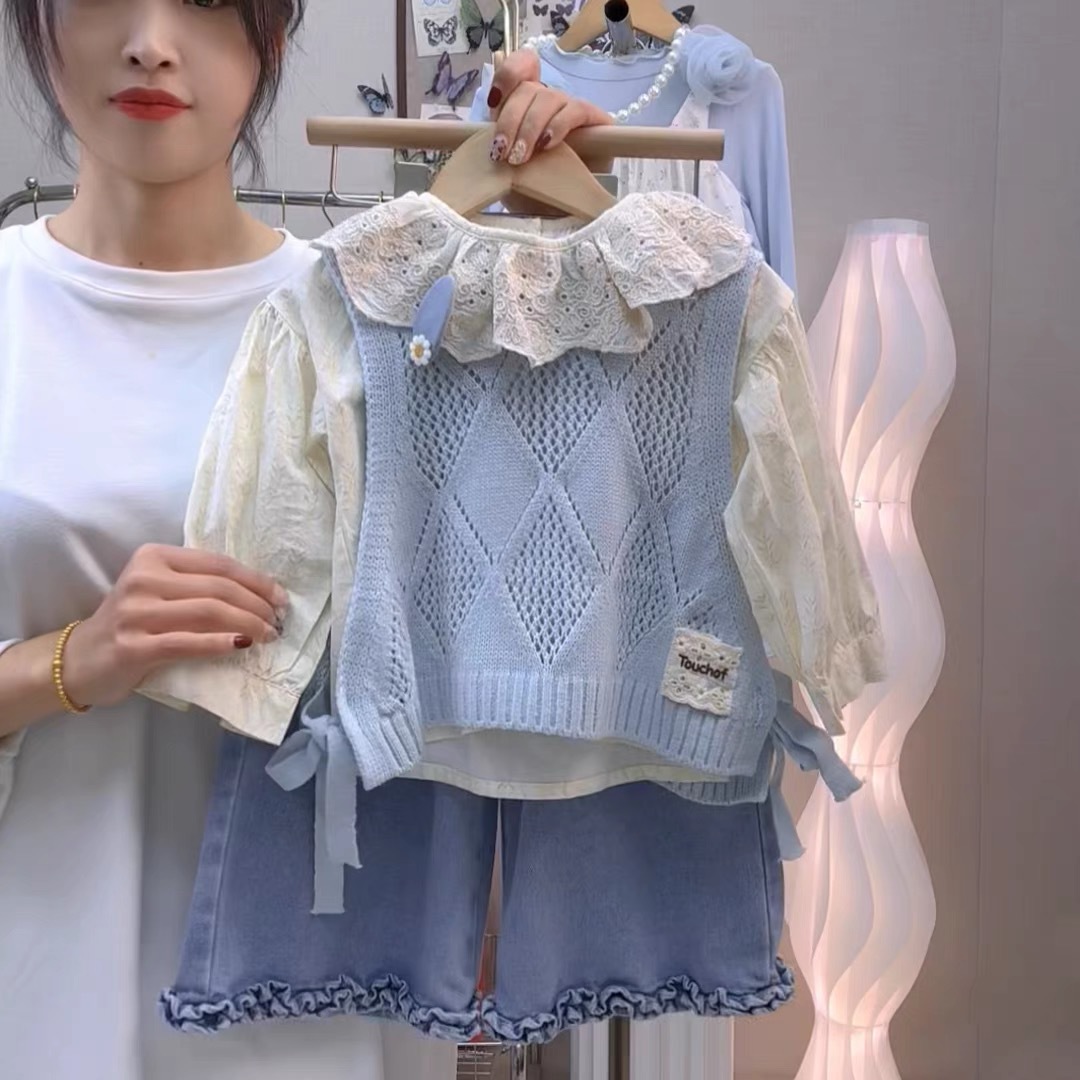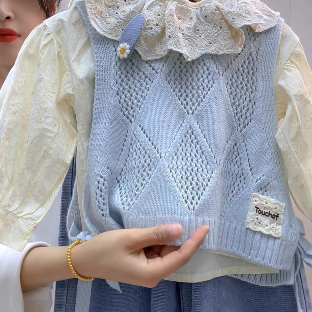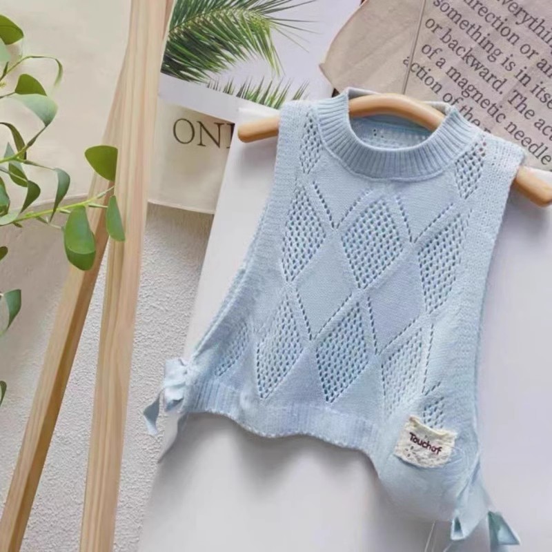 여자 니트 스웨터 2025 새로운 봄과 가을 어린이 서양식 달콤한 다이아몬드 빈 조끼 여성 아기 조끼 유행스토어 가기