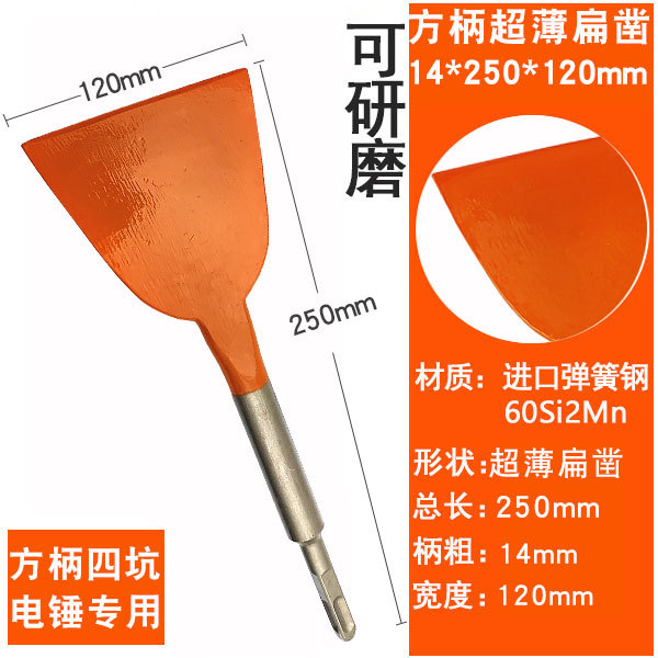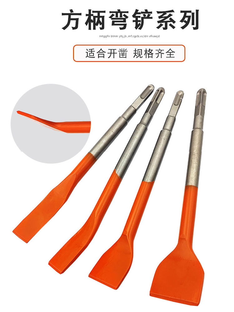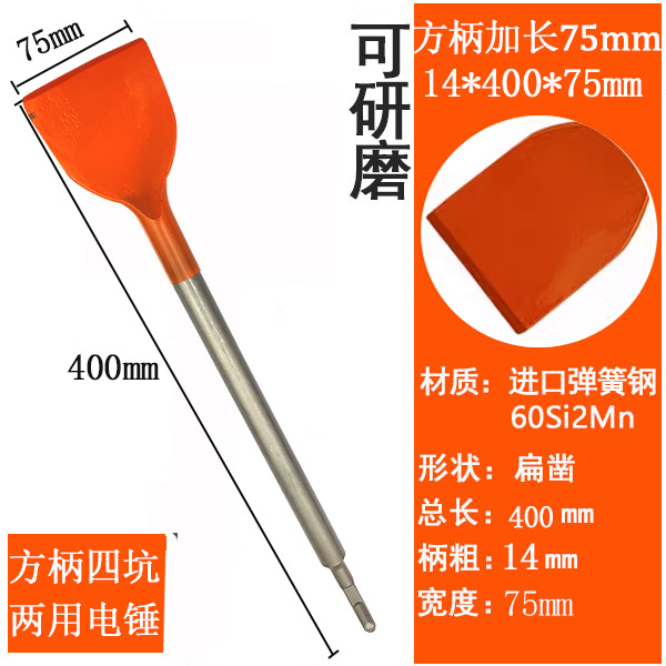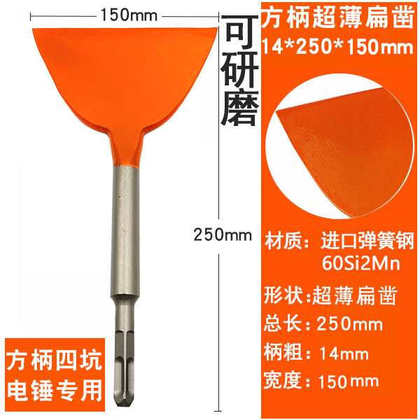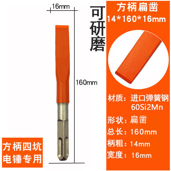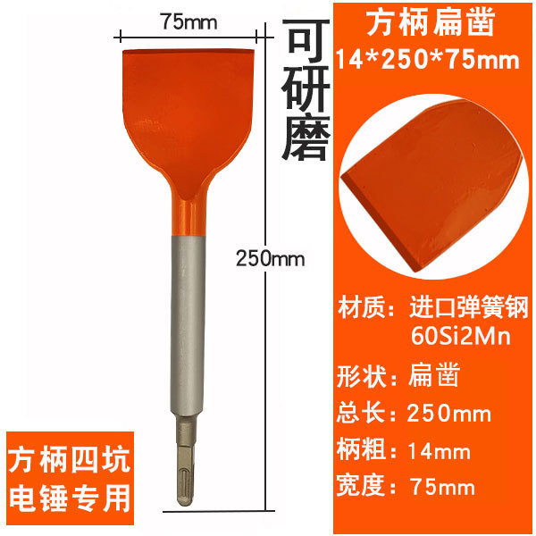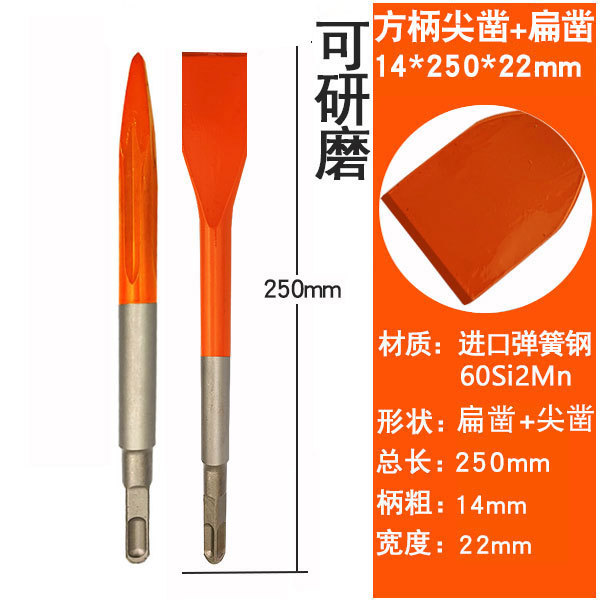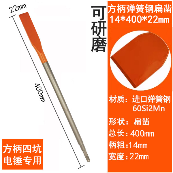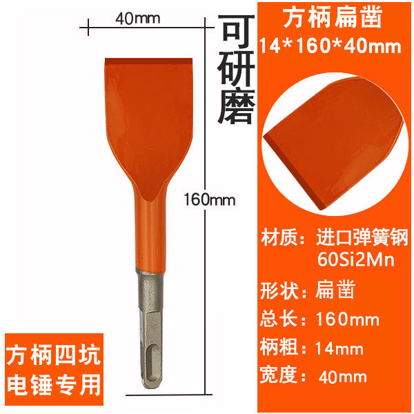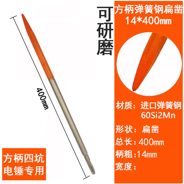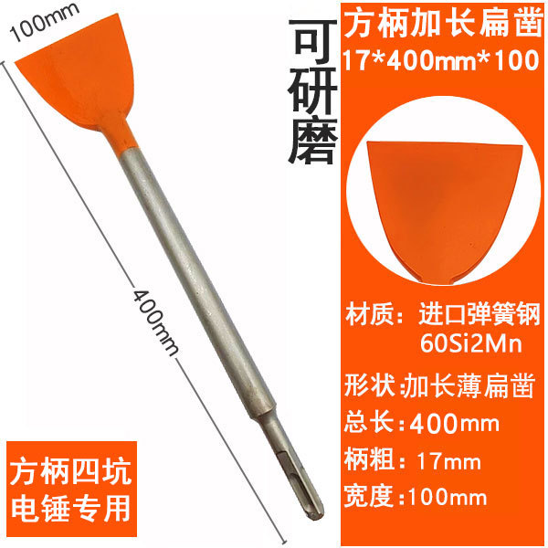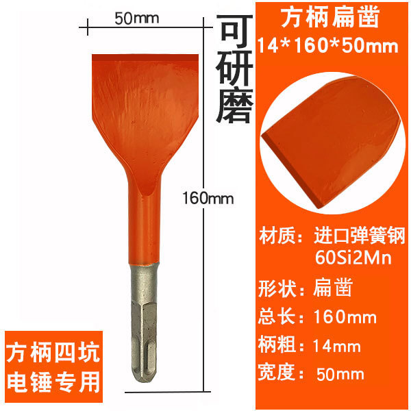 스프링 스틸 스퀘어 핸들 전기 해머 끌 콘크리트 물 및 전기 슬롯 확장 플랫 삽 슈퍼 하드 뾰족한 플랫 끌