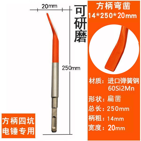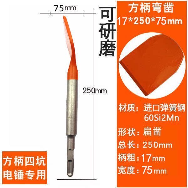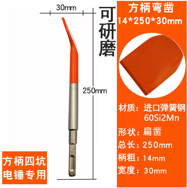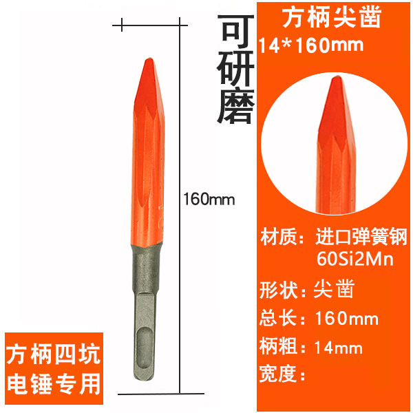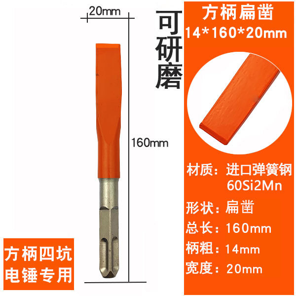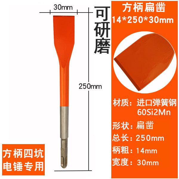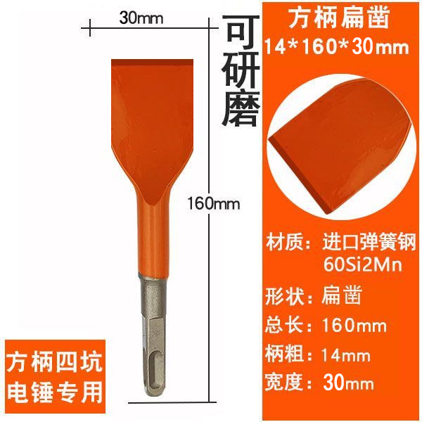 스프링 스틸 스퀘어 핸들 전기 해머 끌 콘크리트 물 및 전기 슬롯 확장 플랫 삽 슈퍼 하드 뾰족한 플랫 끌스토어 가기