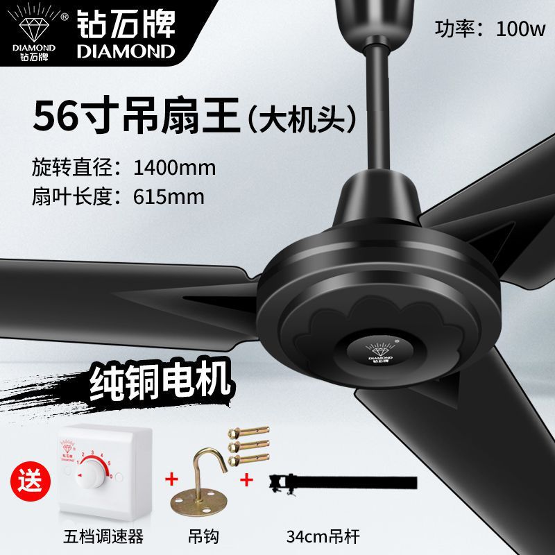 다이아몬드 천장 팬 팬 큰 바람 집 거실 검은 침묵 천장 팬 킹 산업 56 인치 철 잎 선풍기스토어 가기