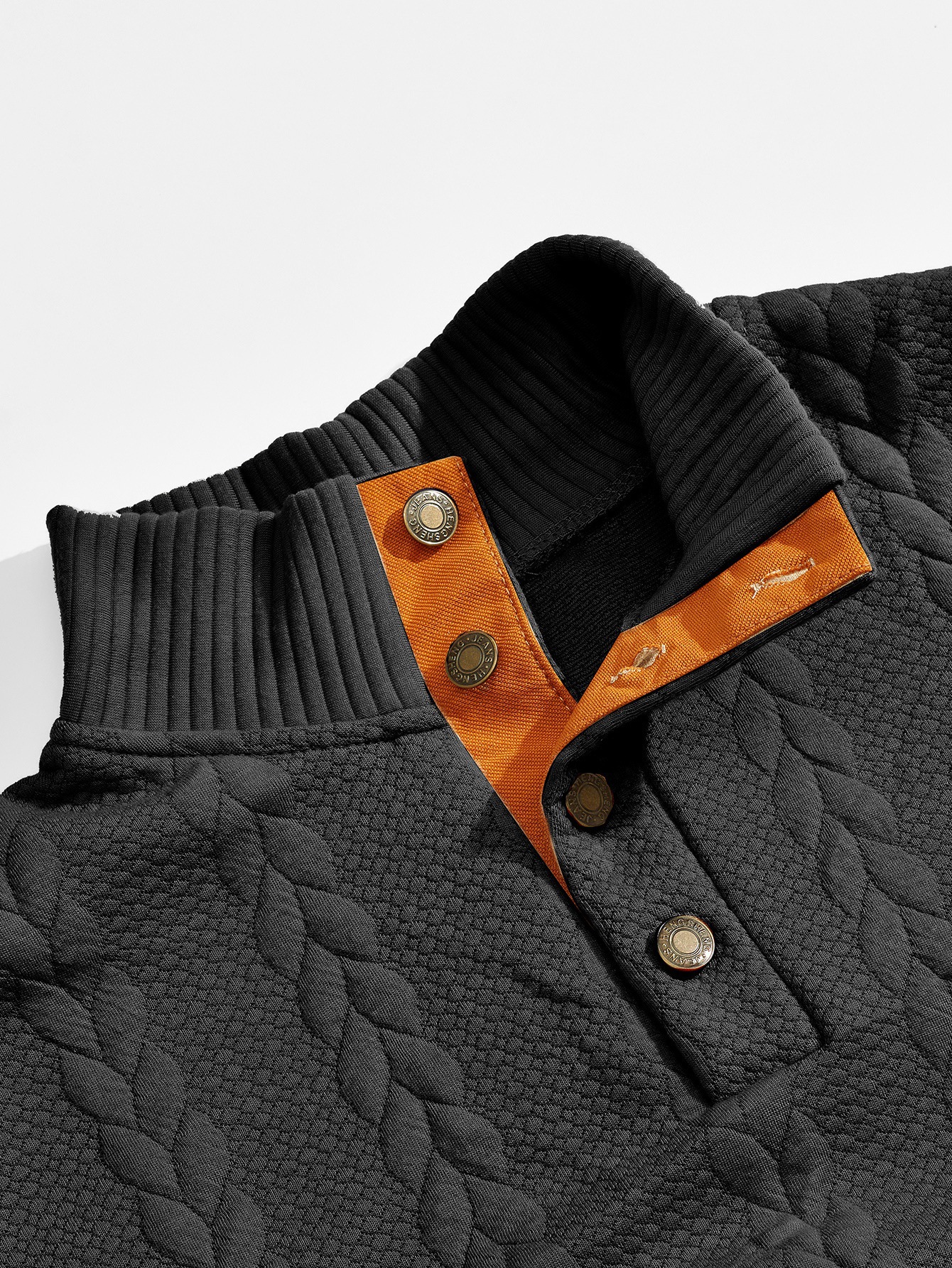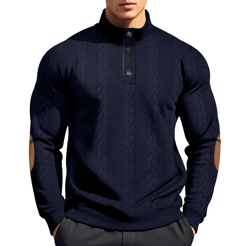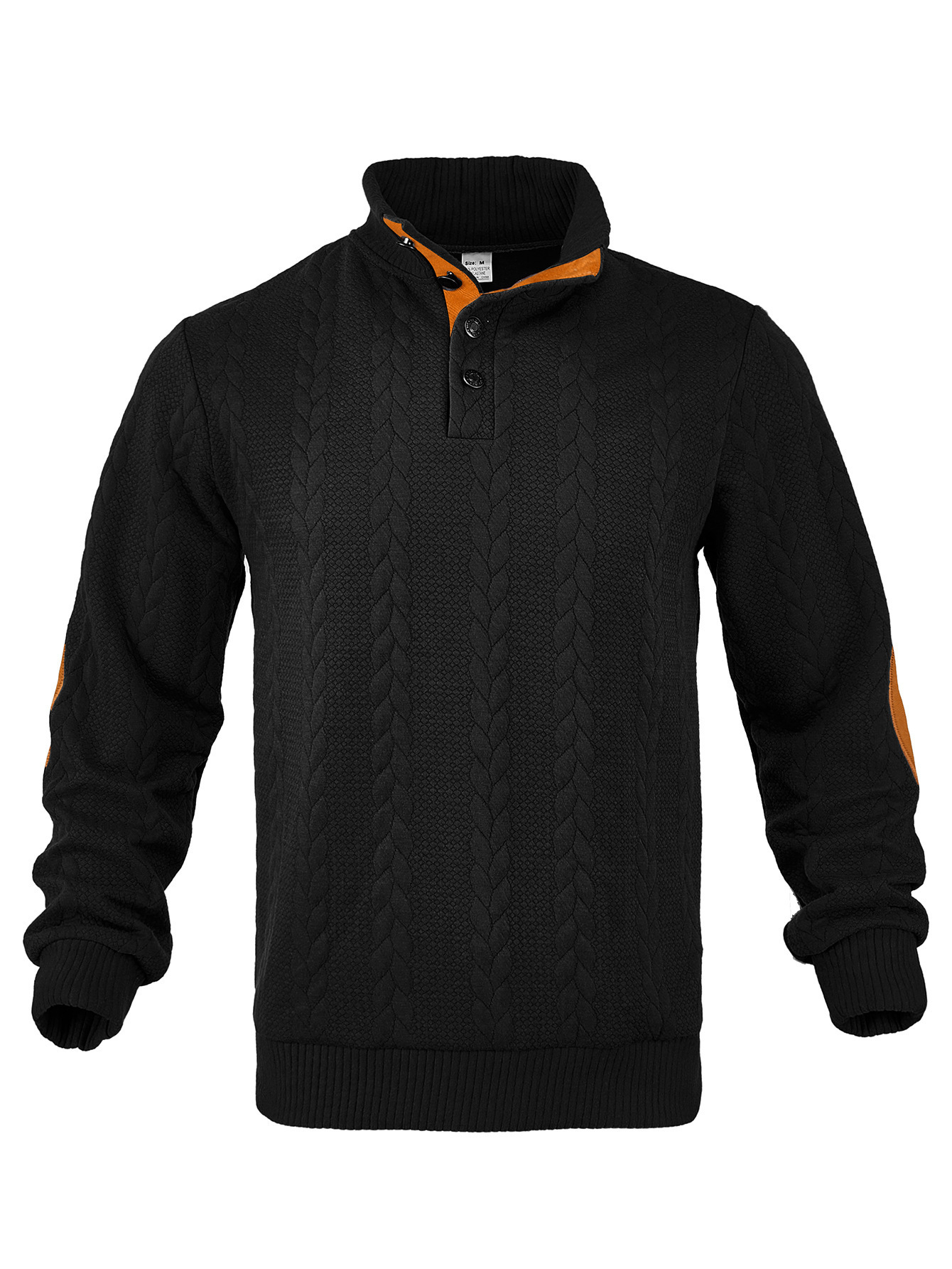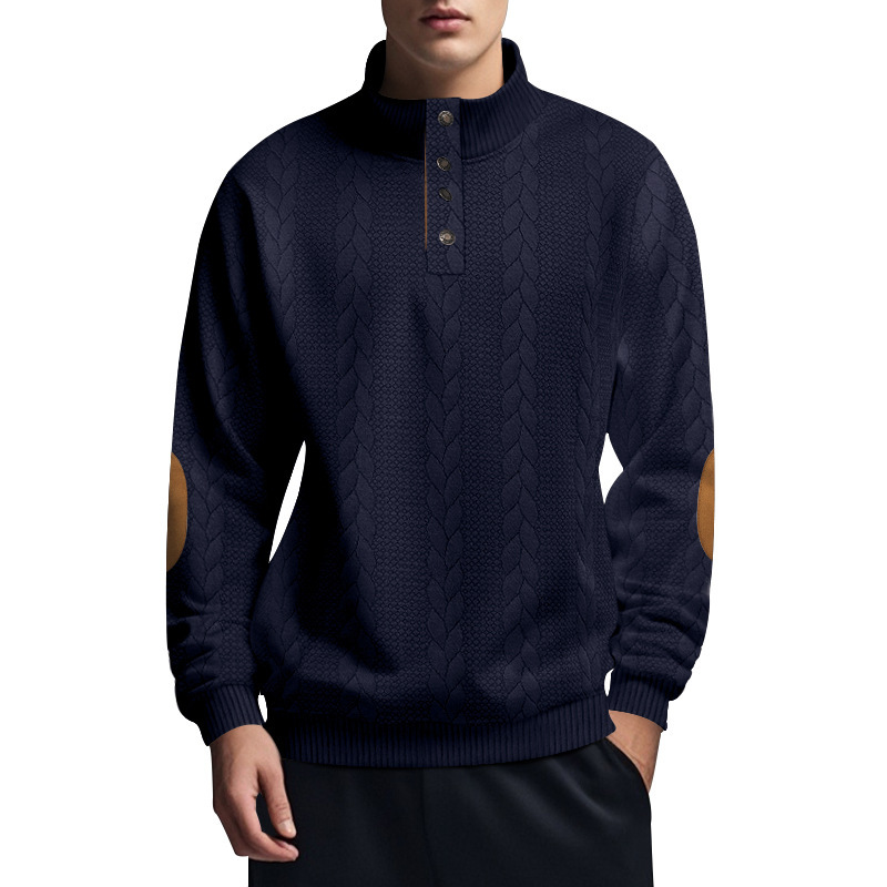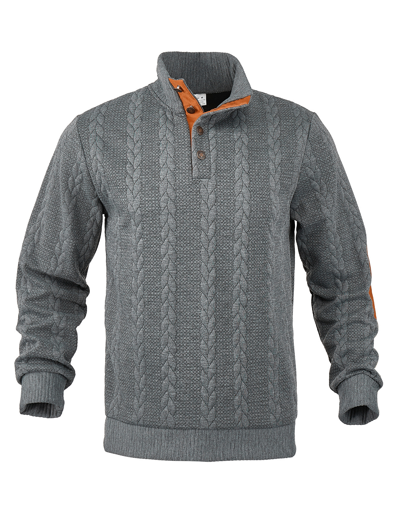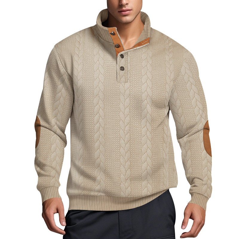 국경 간 아마존 미국의 봄과 가을 무거운 자카드 남자 버튼 칼라 패치 헨리 긴 소매 캐주얼 스웨트 셔츠 남자