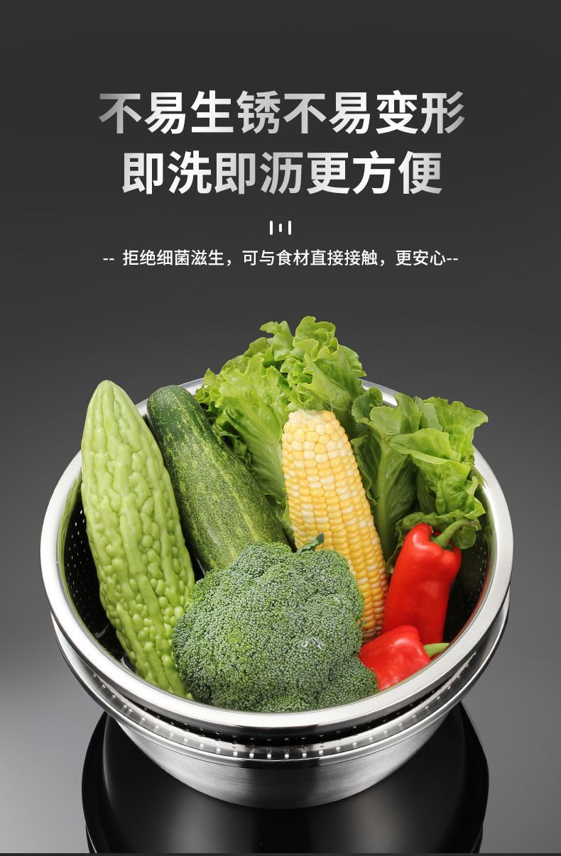 여분의 두꺼운 스테인레스 스틸 배수 바구니 가정용 과일 바구니 및 국수 계란 조미료 야채 세척 분지 두꺼운 쌀 배수스토어 가기