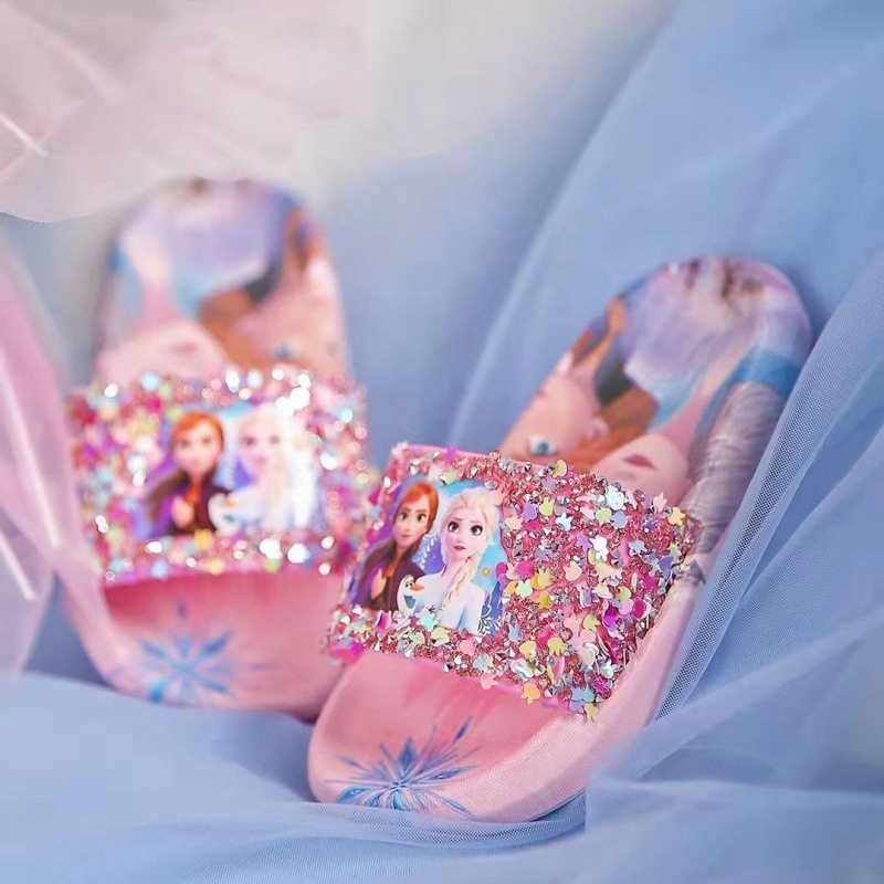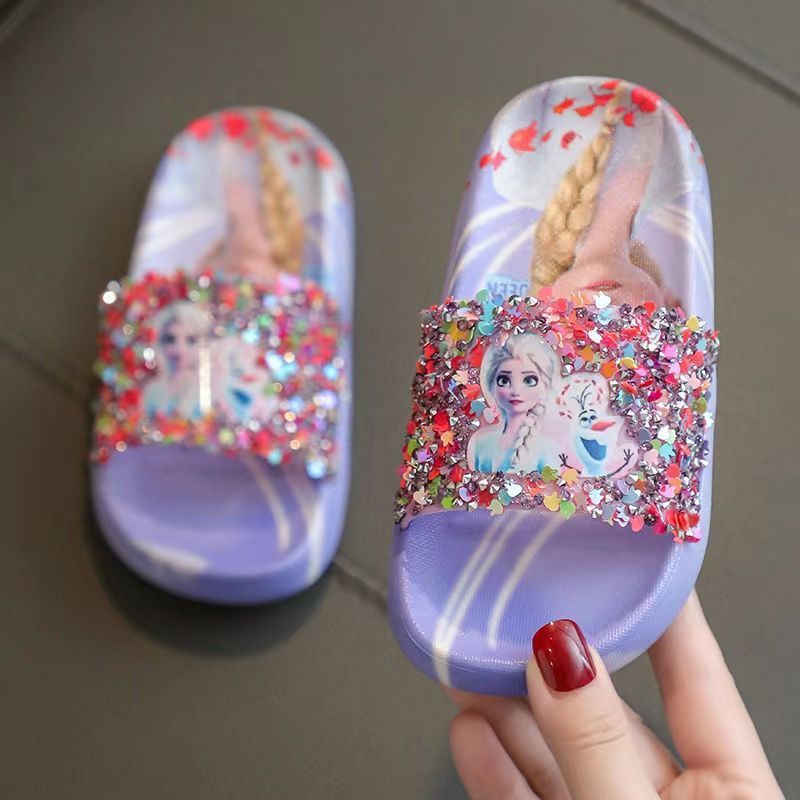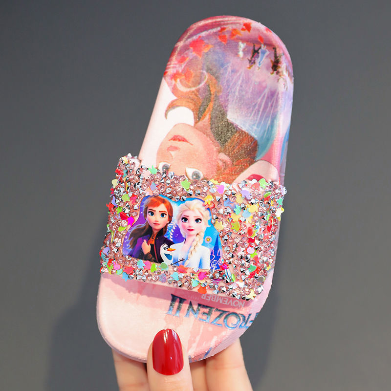 공주 아이샤 슬리퍼 여자 여름 패션 어린이 크리스탈 샌들 실내 홈 소프트 단독 냉동 신발