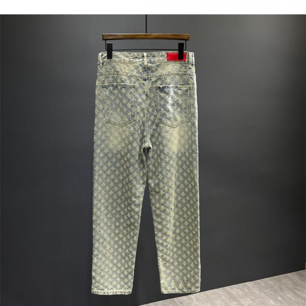 유럽과 미국의 하이 스트리트 팬츠 인 타이드 브랜드 자카드 전체 인쇄 디자인 센스 청바지 남성용 느슨한 넓은 다리 바지 조수 공급스토어 가기