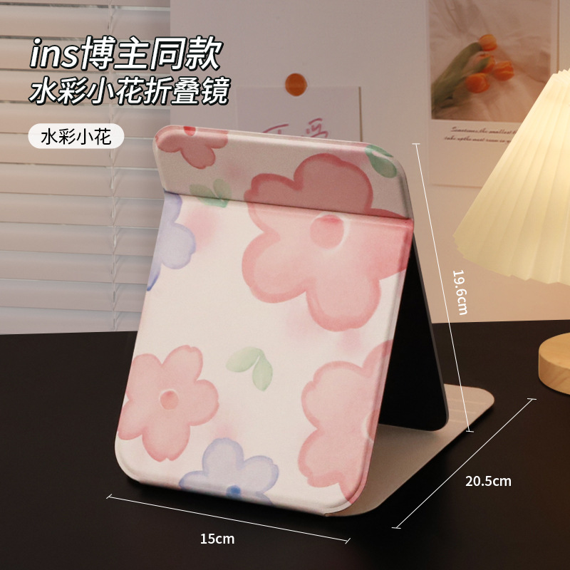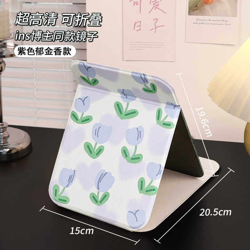 Ins 스타일 데스크탑 메이크업 학생 기숙사 사무실은 작은 드레싱 휴대용 데스크탑 접이식 플립 커버 대형 거울을 견딜 수 있습니다스토어 가기