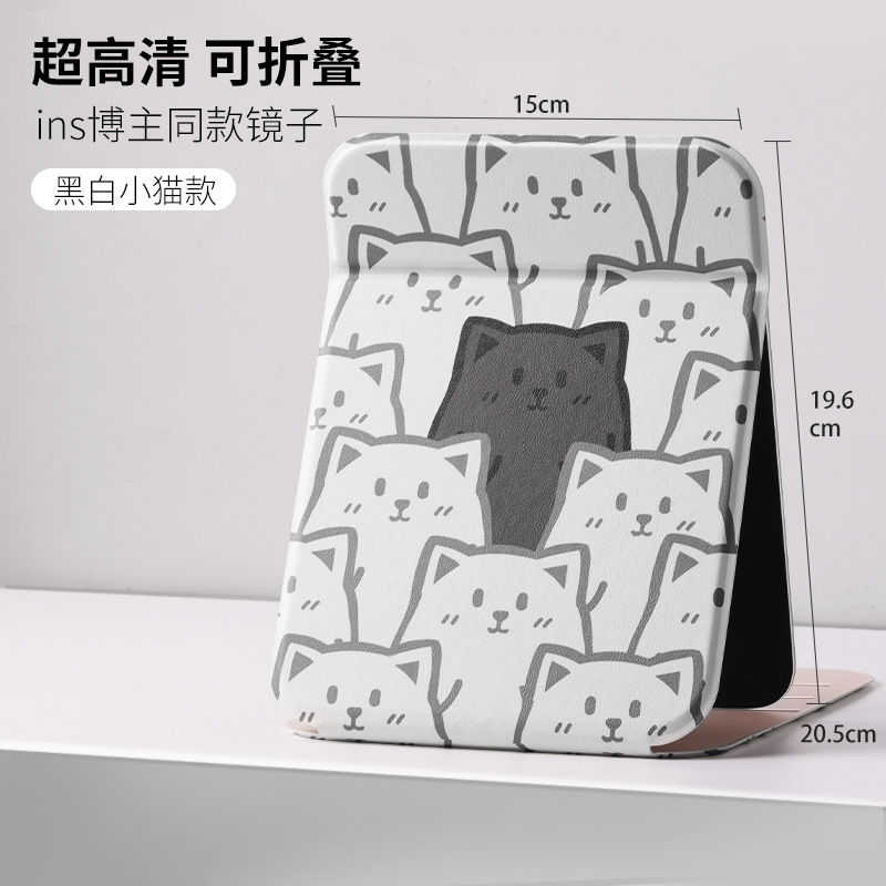 • 흑백 새끼 고양이 대형 - 데스크탑 화장용 접이식 거울