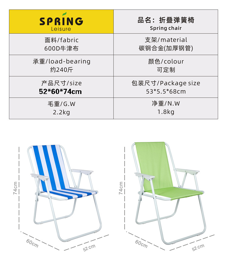 맞춤형 팔걸이 접이식 의자 휴대용 캠핑 의자 해변 레저 낚시 의자 금속 강화 봄 의자 국경 폭발스토어 가기