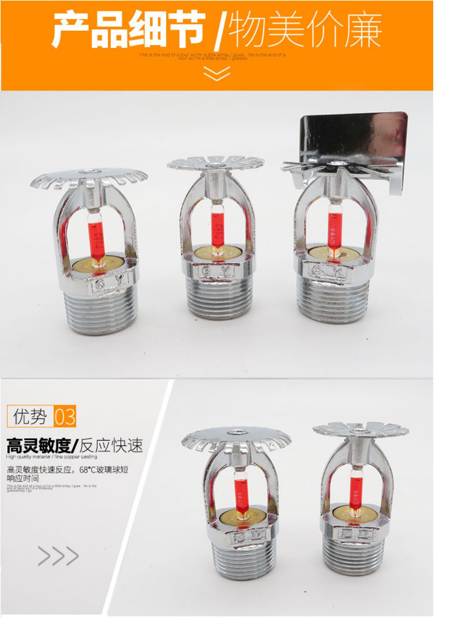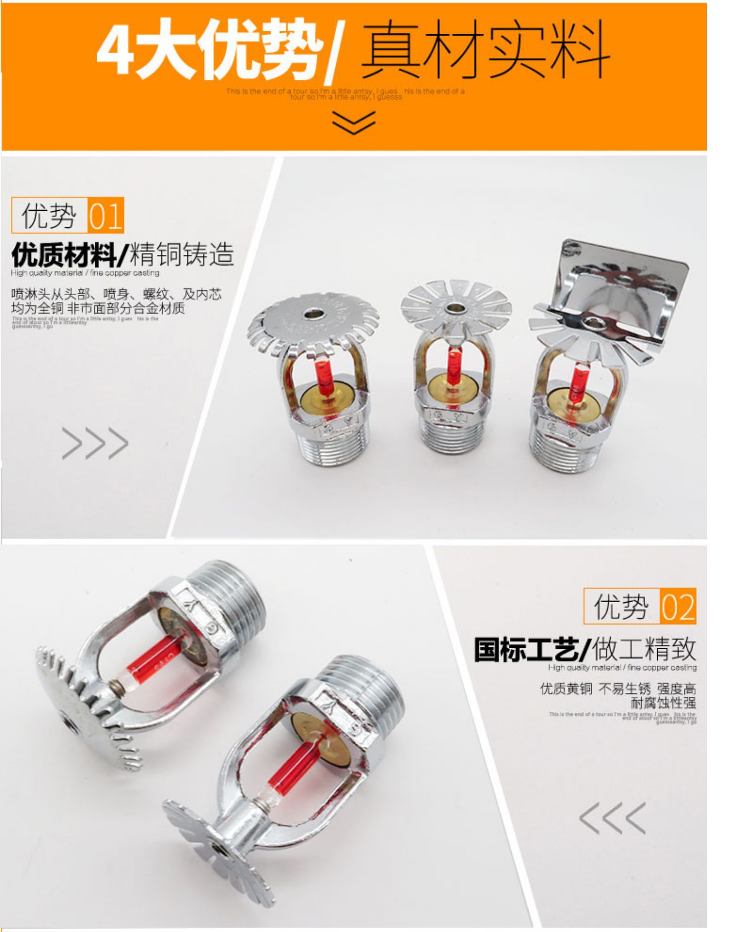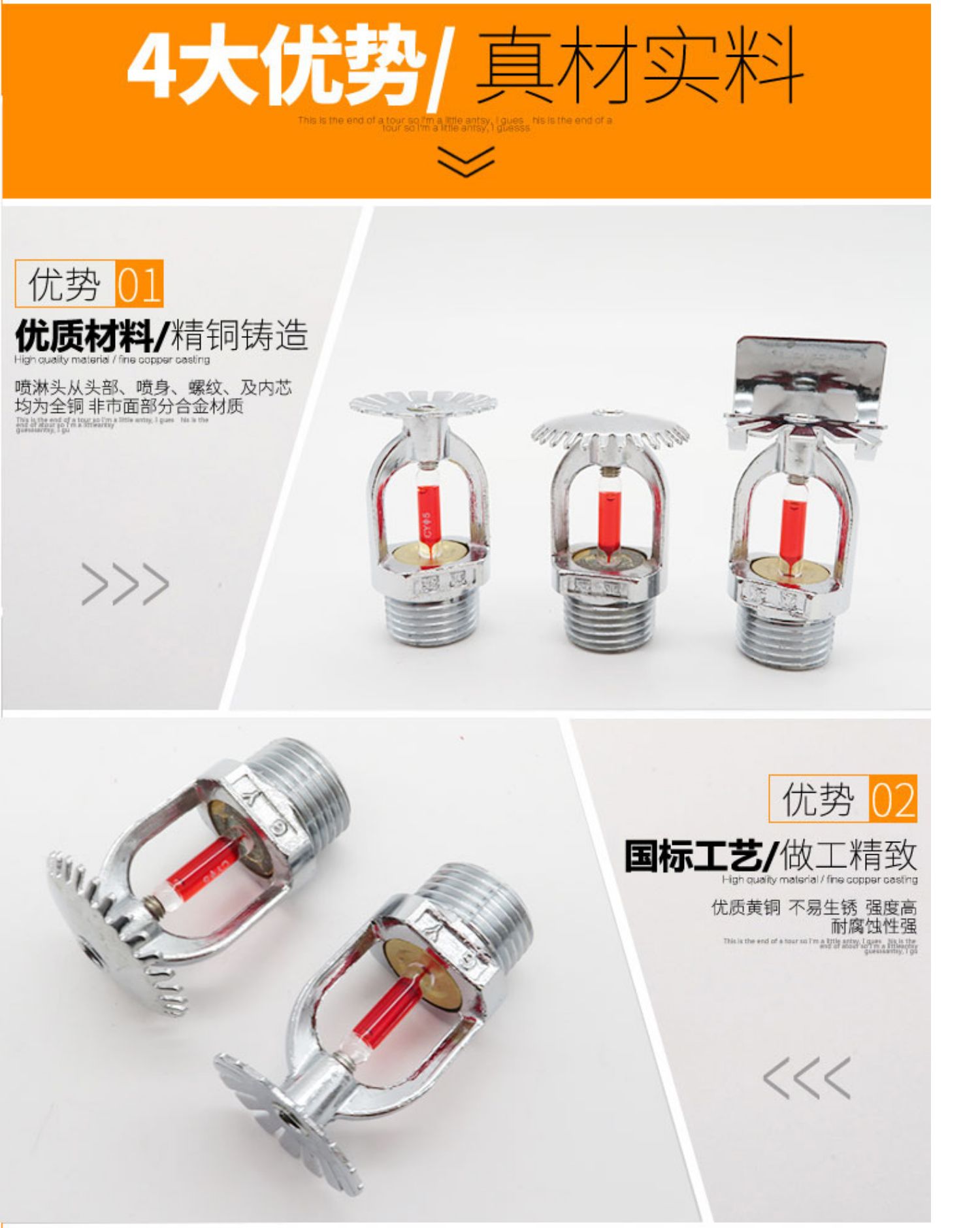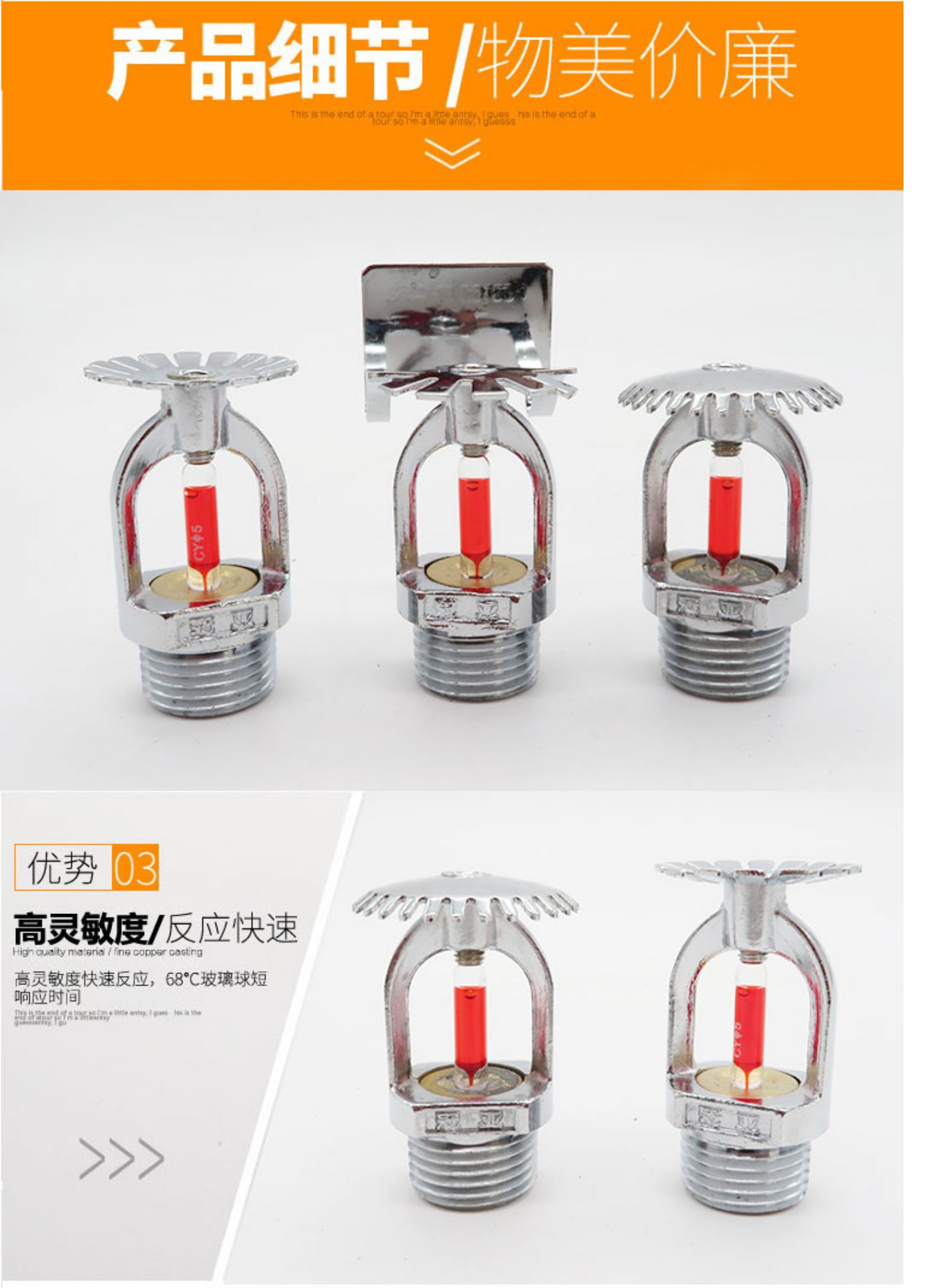 빠른 응답 화재 스프링클러 낮은 스프레이 다운 타입 상부 스프레이 수직 측면 벽 확장 유형 스프링클러 노즐스토어 가기