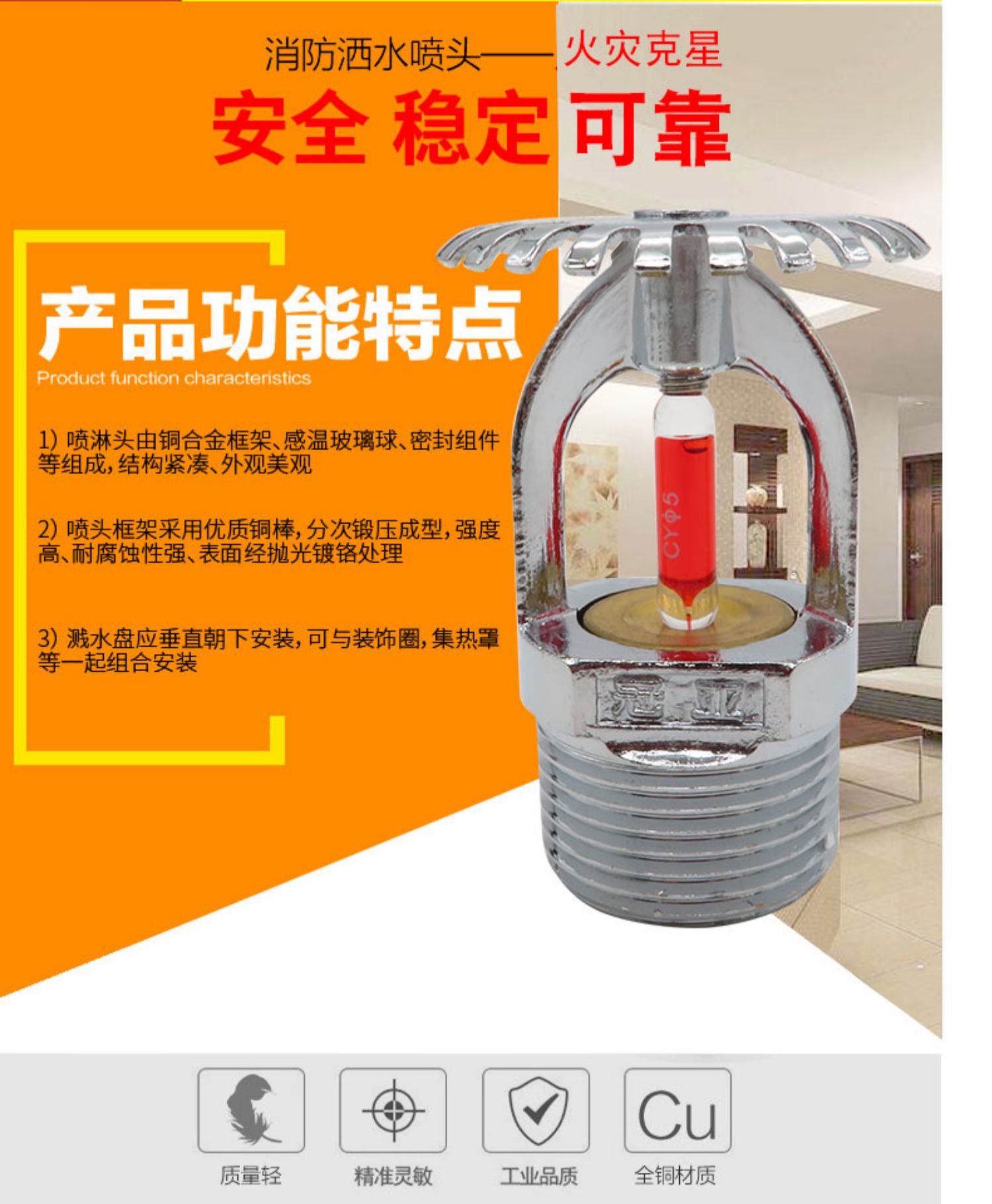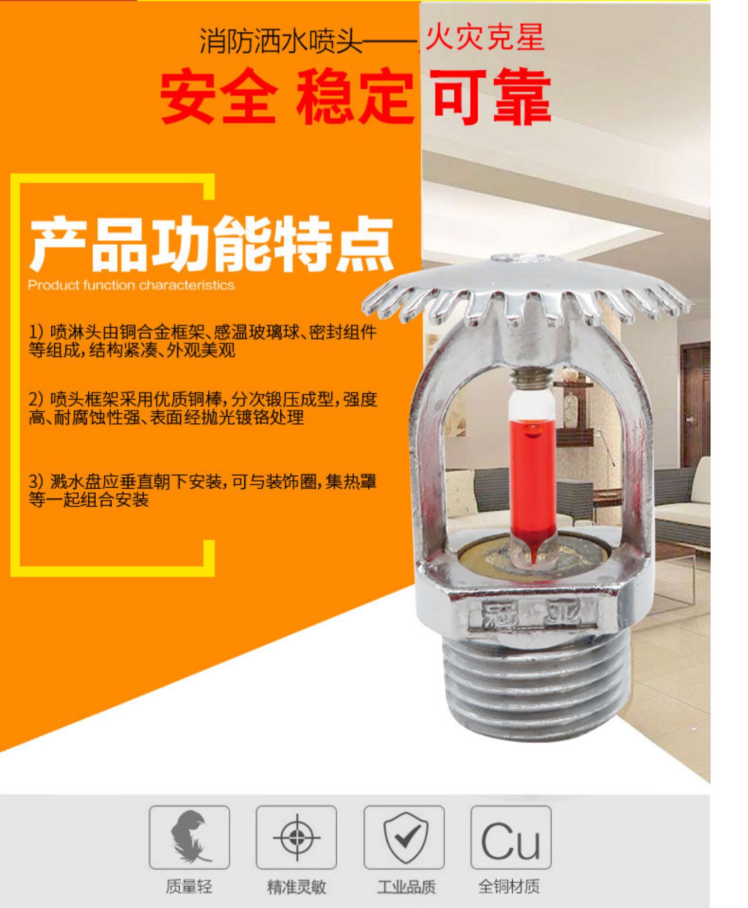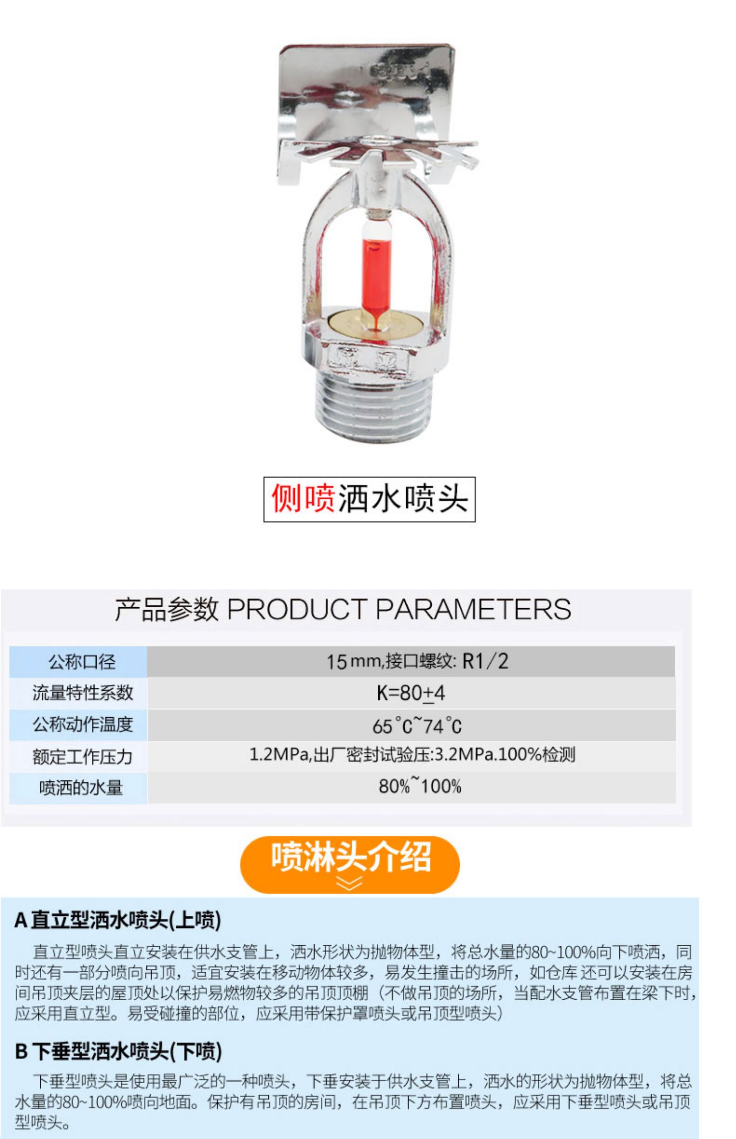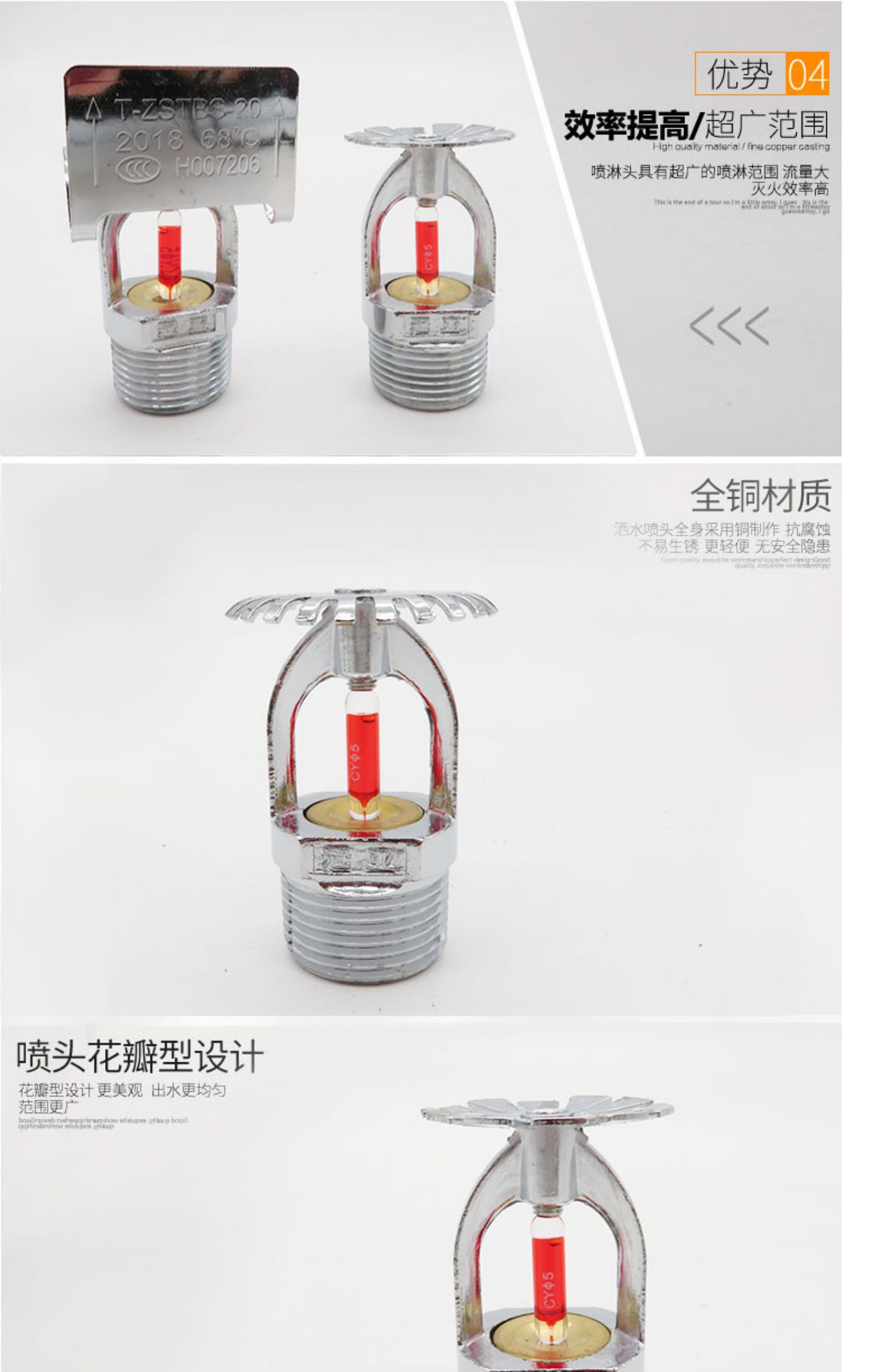 빠른 응답 화재 스프링클러 낮은 스프레이 다운 타입 상부 스프레이 수직 측면 벽 확장 유형 스프링클러 노즐스토어 가기