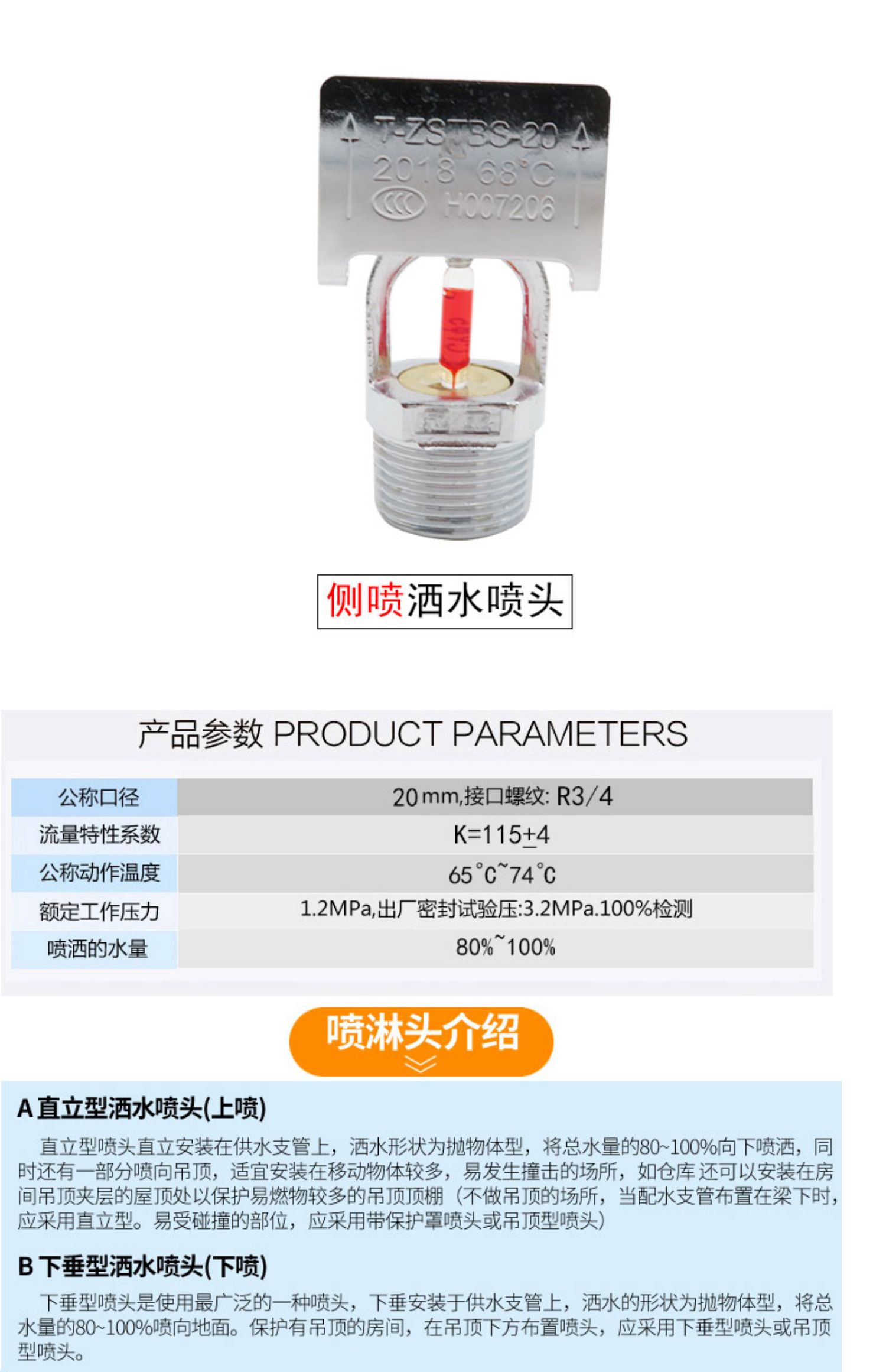 • 빠른 응답 K-ZSTBS DN20 K115 68°측면 스프레이
