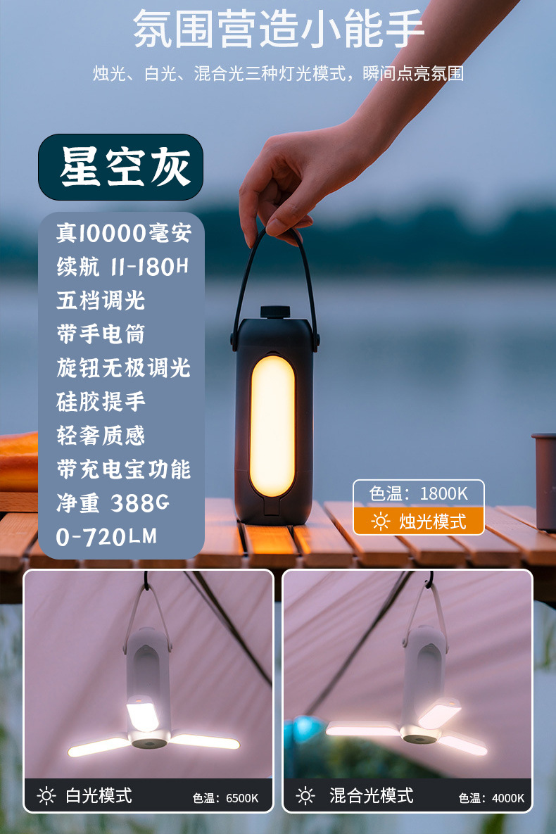 • 세잎 램프 - 별이 빛나는 하늘 회색 [최고 10000mAh/11-180h] 5단계 디밍/무단계 조정