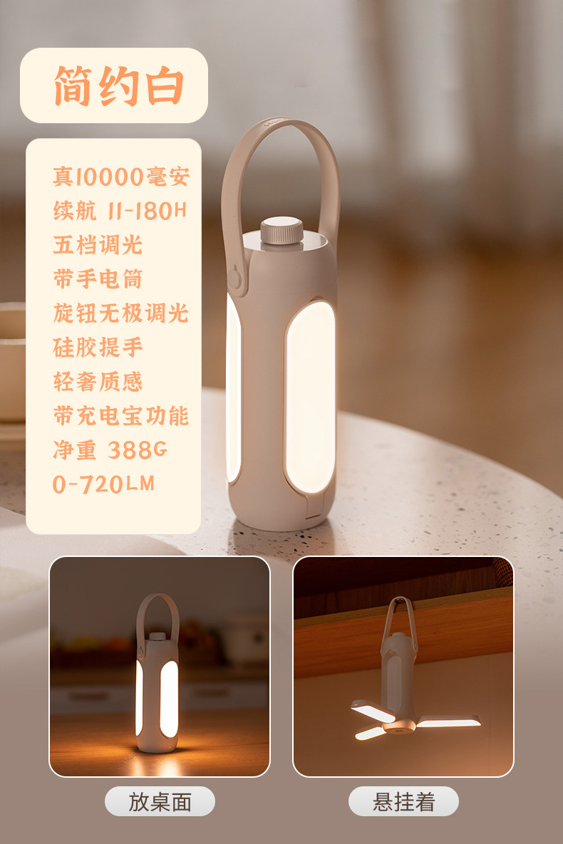 • 세잎램프-심플화이트 [최고 10000mAh/11-180h] 5단계 디밍/무단계 조절