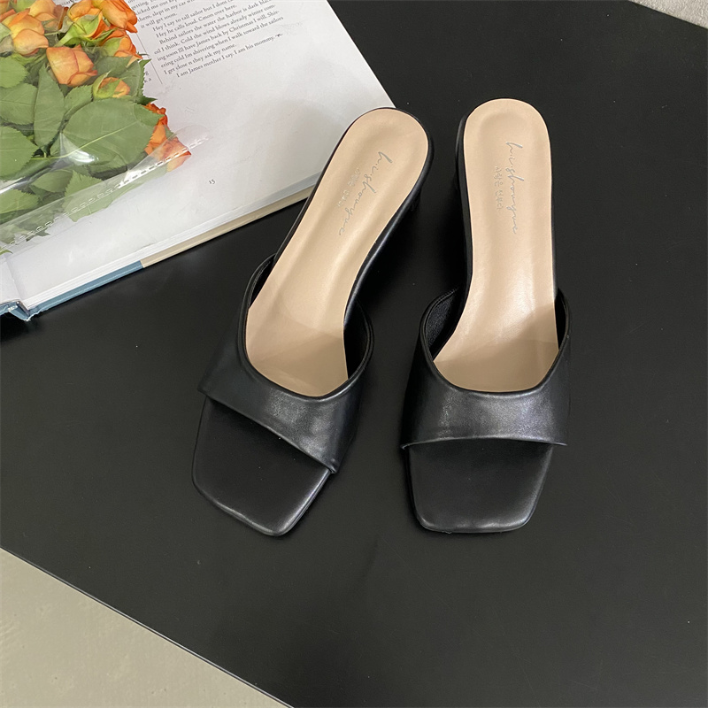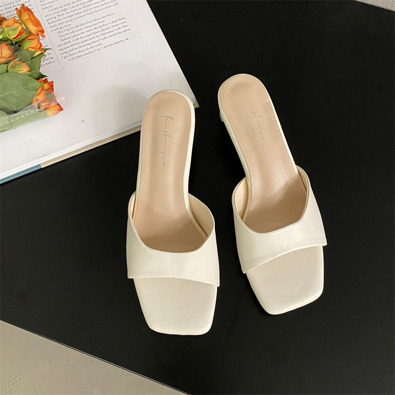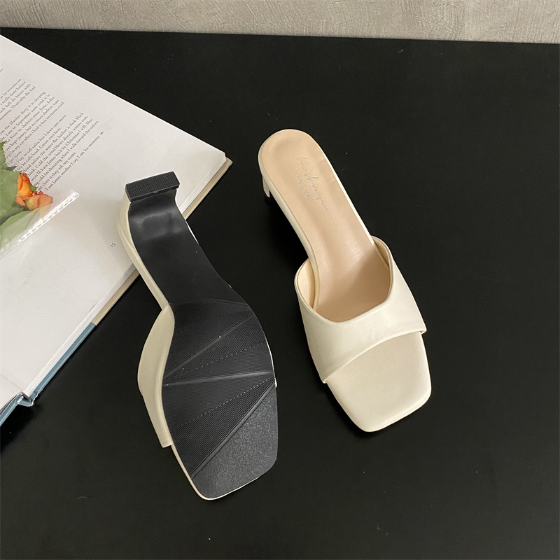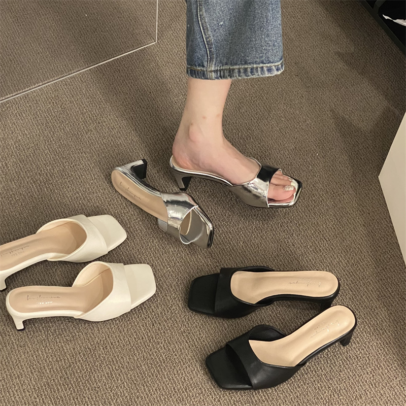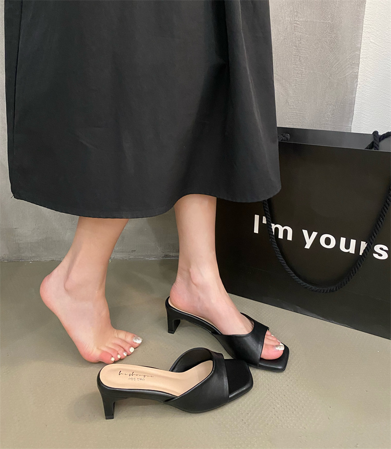 무거운 추천! 거친 뒤꿈치 슬리퍼 여성 여름 2025 새로운 한국 스타일 프랑스 스타일 하이힐 샌들 저녁 식사