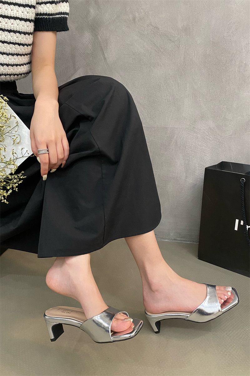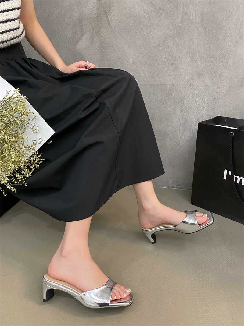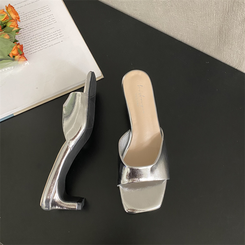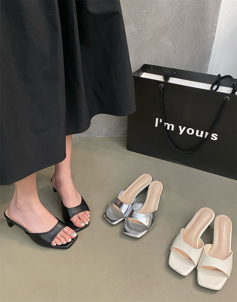 무거운 추천! 거친 뒤꿈치 슬리퍼 여성 여름 2025 새로운 한국 스타일 프랑스 스타일 하이힐 샌들 저녁 식사