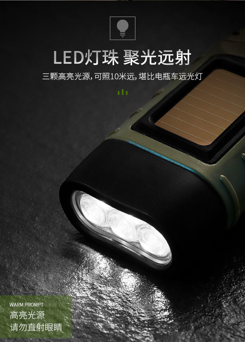다기능 핸드 크랭크 손전등 태양 자체 충전 휴대용 홈 필드 전투 준비 비상 장비