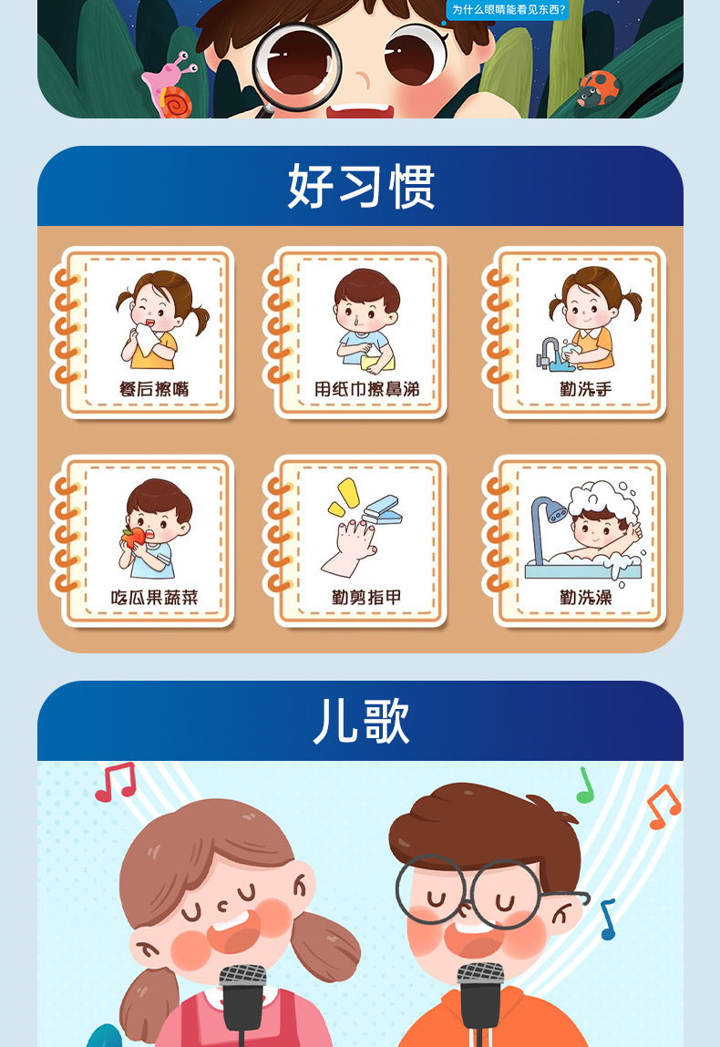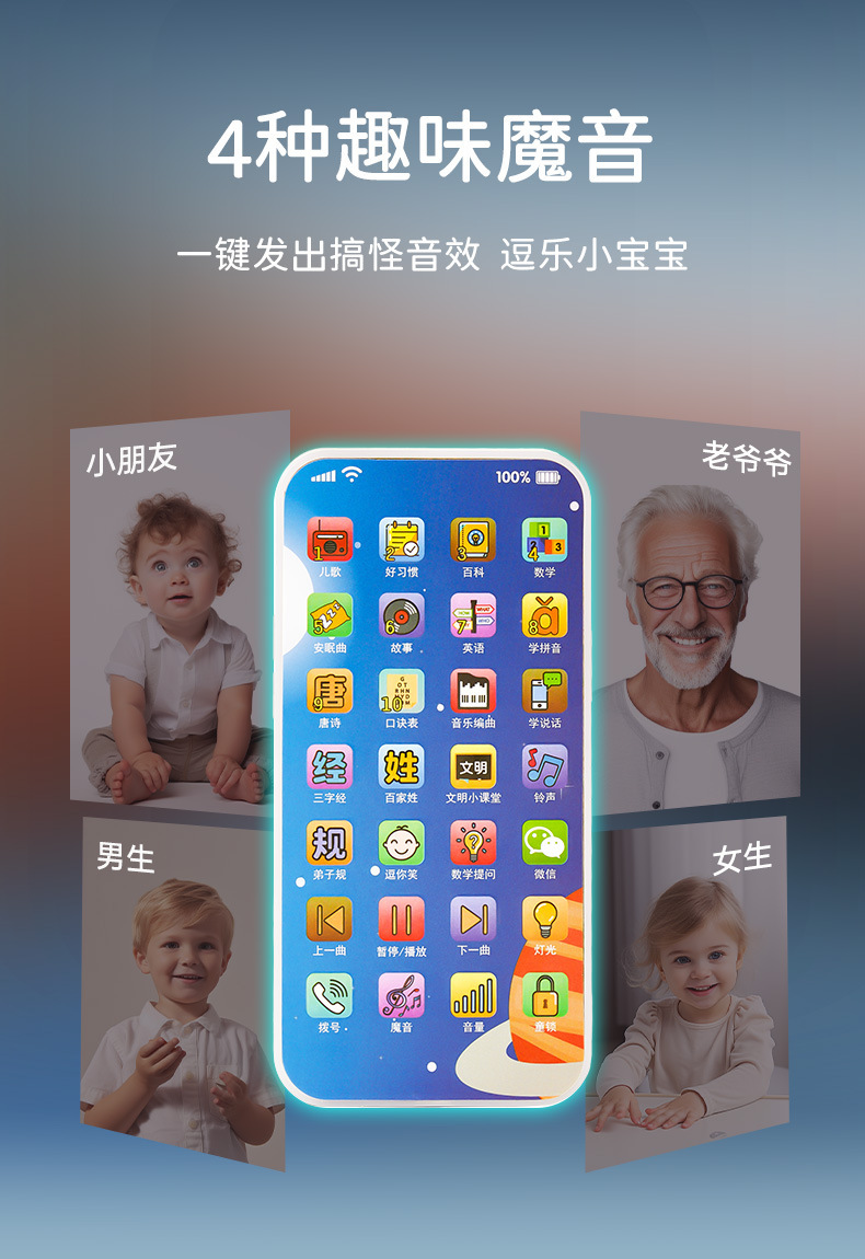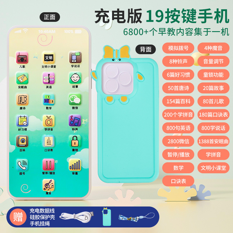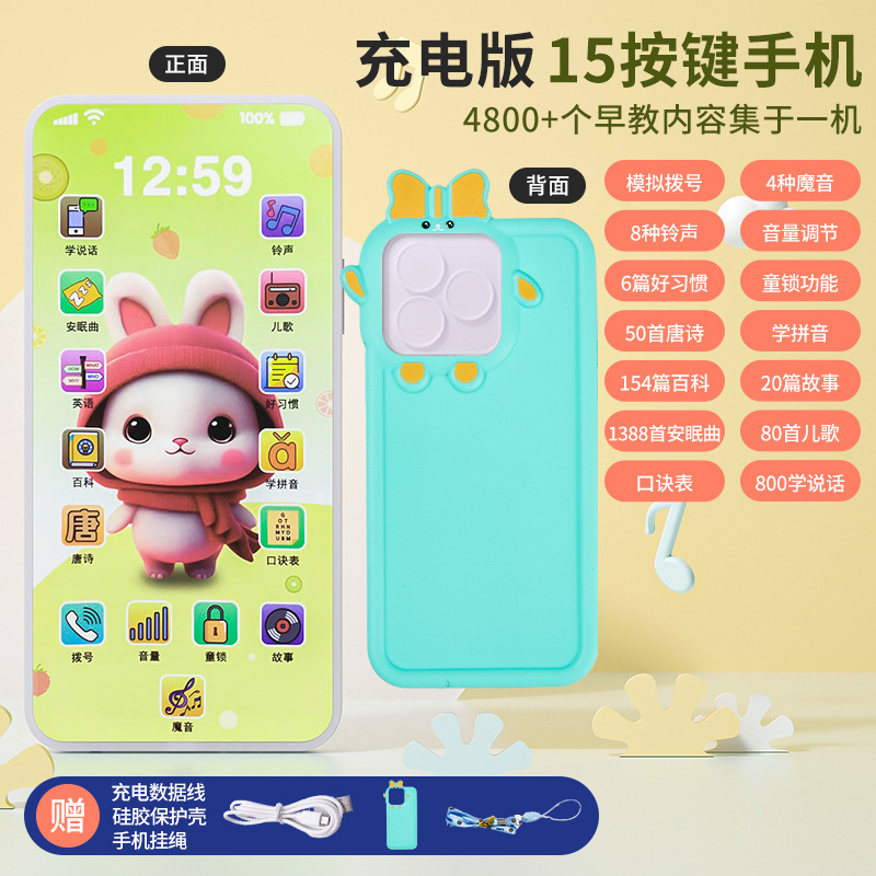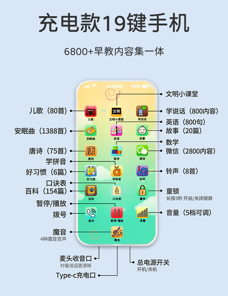 • 60개의 기능 키 변환(귀여운 토끼 모델) · 20000개 이상의 조기 교육 콘텐츠 - 조명 및 음악 포함(내장 마이크 + 충전 케이블 + 끈 + 정교한 선물 상자)