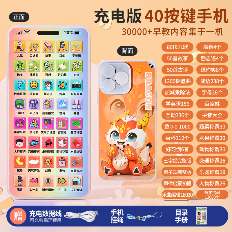 • [용의 해 한정판·오렌지 드래곤 베이비] 40개의 기능 키·30000개 이상의 조기 교육 콘텐츠 - 조명 및 음악 포함(내장 마이크 + 충전 케이블 + 끈 + 절묘한