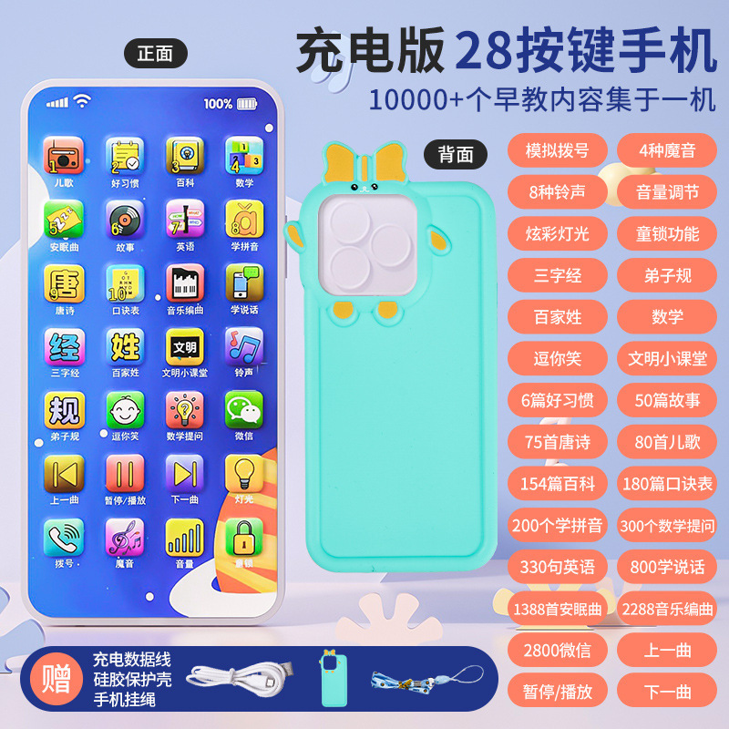 • [무료 랜야드 + 실리콘 케이스] 기능키 28개 · 유아교육 콘텐츠 10,000개 이상 - 조명과 음악 + 씹을 수 있는 실리콘 케이스