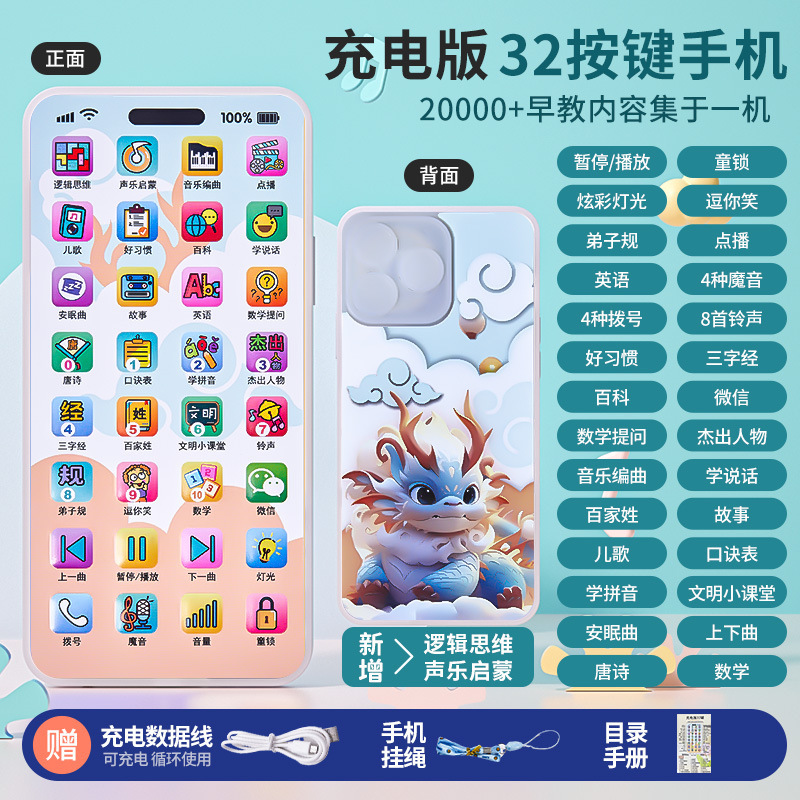 • [용의 해·기린블루] 기능키 32개·조기교육 콘텐츠 20,000개 이상 - 조명과 음악 포함(내장 마이크 + 충전 케이블 + 끈 + 고급 선물 상자)