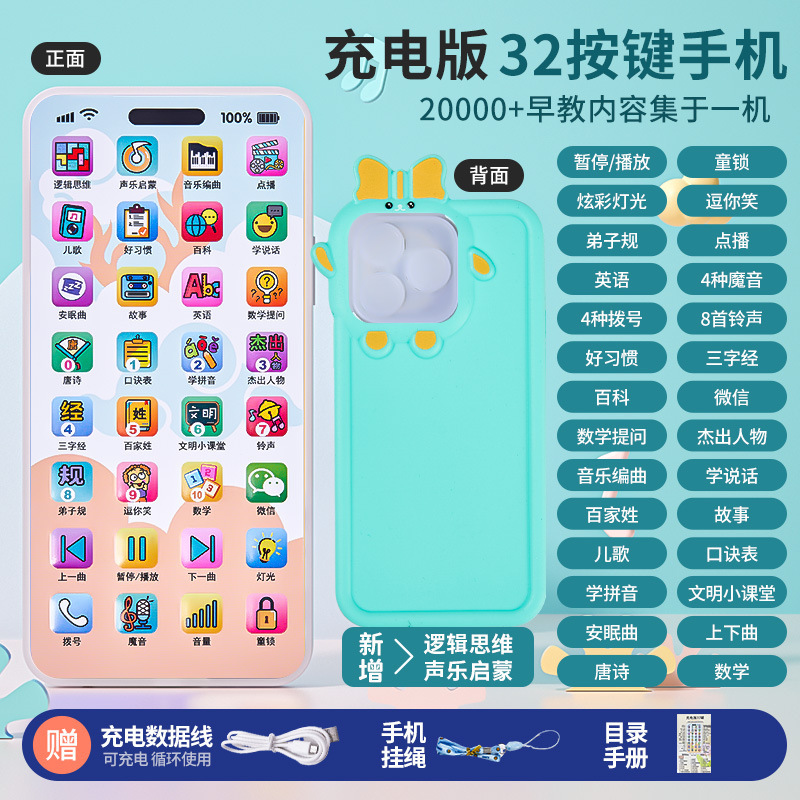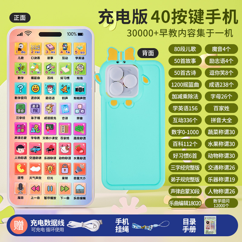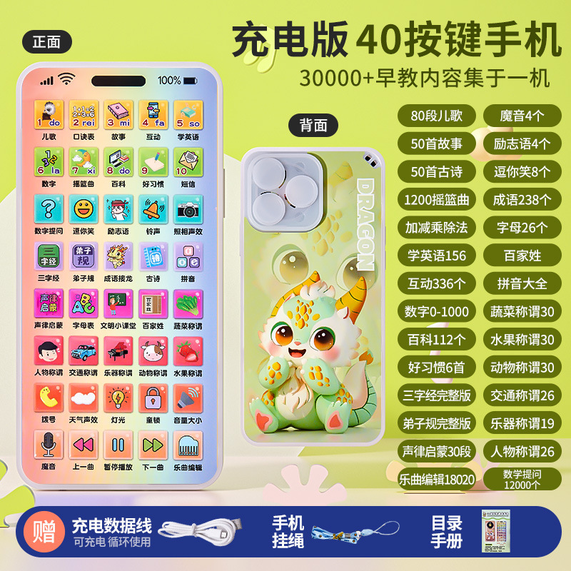 • [용의 해 한정판·그린 드래곤 베이비] 40개의 기능 키·30000개 이상의 조기 교육 콘텐츠 - 조명 및 음악 포함(내장 마이크 + 충전 케이블 + 끈 + 절묘한