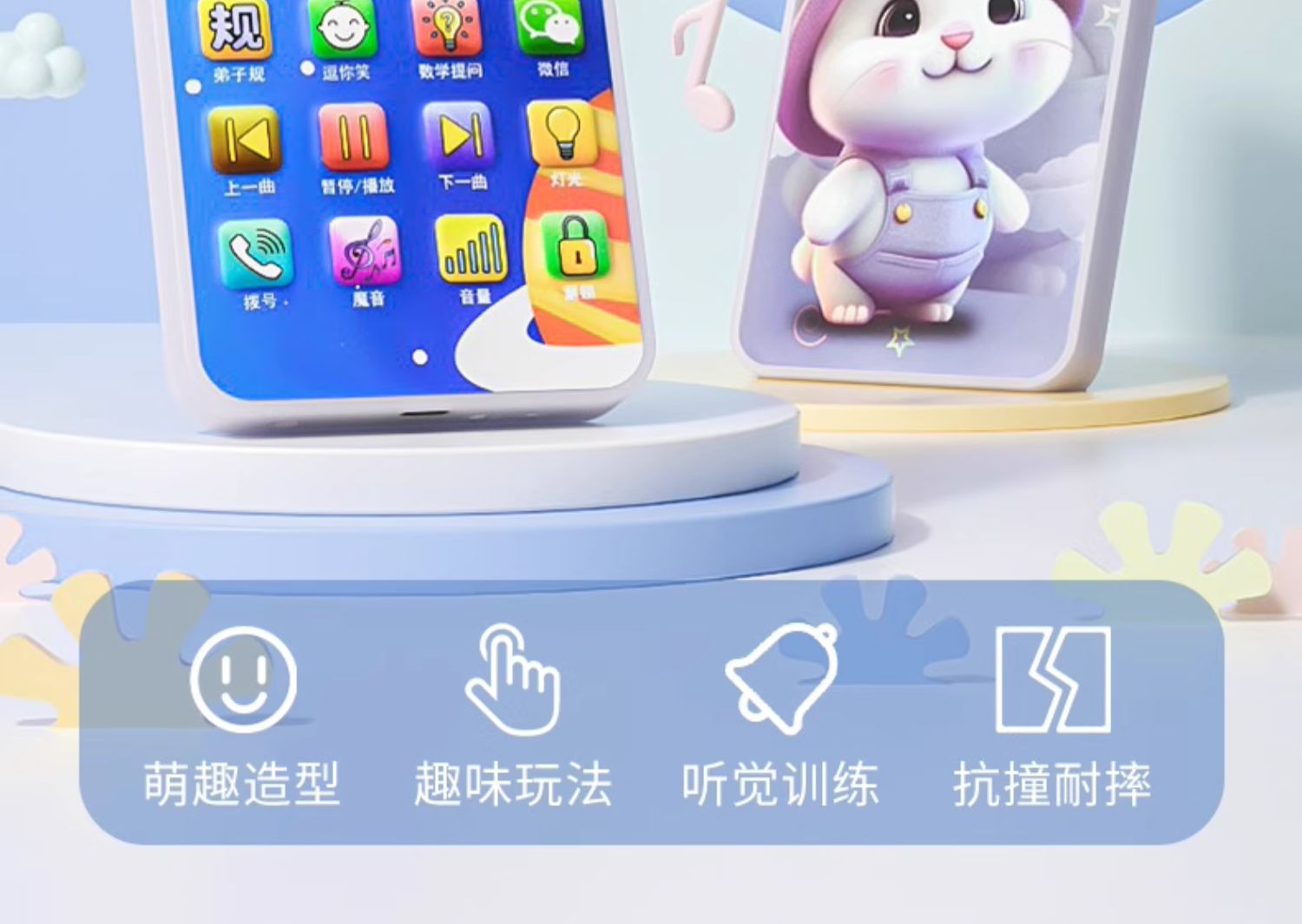 • [무료 랜야드 + 실리콘 케이스] 60개의 기능키 변환(귀여운 토끼 모델) · 20,000개 이상의 조기 교육 콘텐츠 - 조명과 음악 + 씹을 수 있는 실리콘 케이스