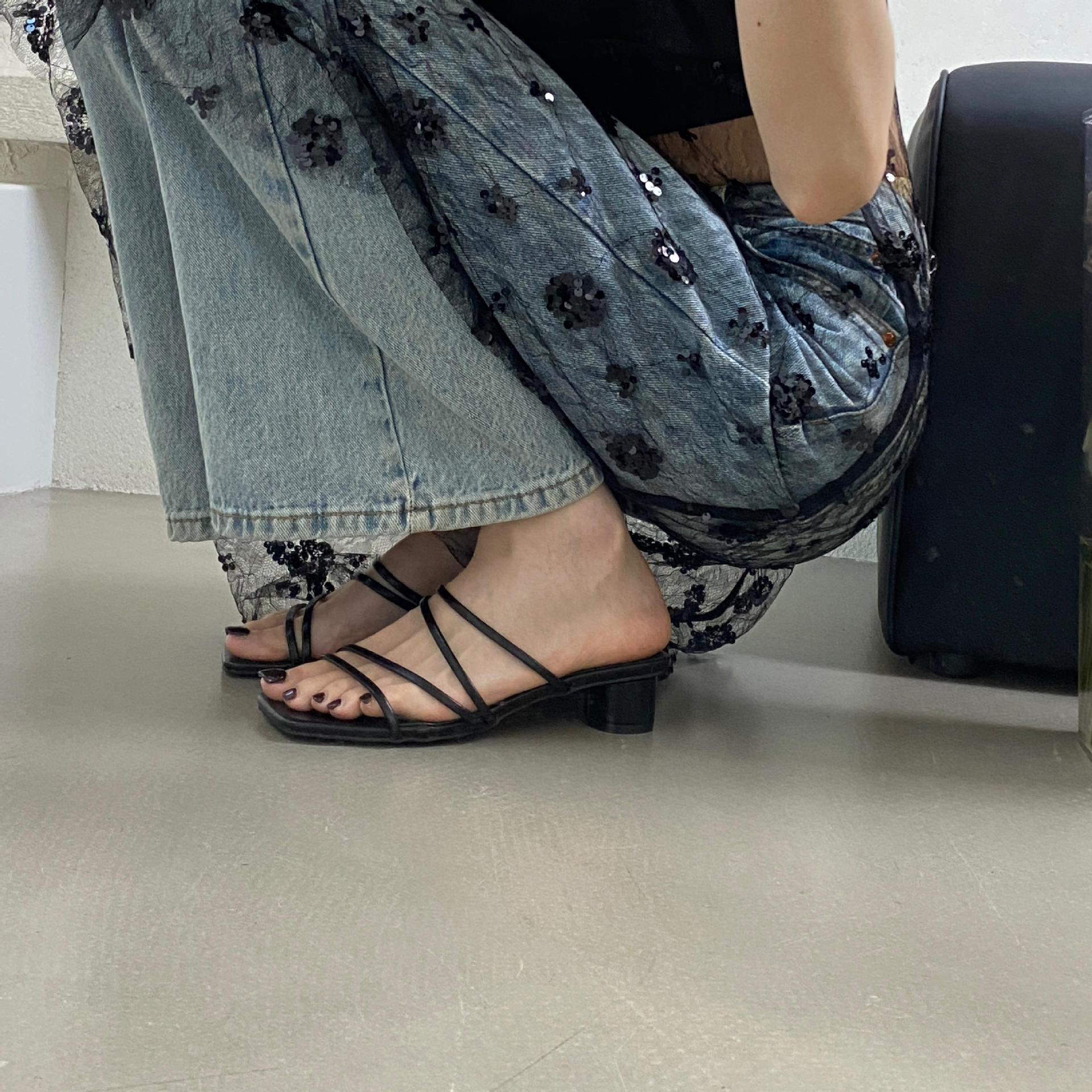 프랑스 스타일 블랙 슬라이드 슬리퍼 여성 아우터 2025 새로운 한국식 두꺼운 힐 오픈 토 스퀘어 발가락 실버 원슈 샌들스토어 가기