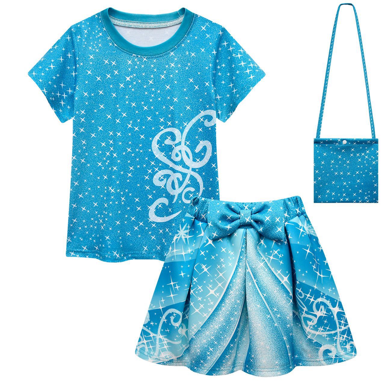 여름 원피스 공주 신디 공주 엘로 소녀의 짧은 소매 주름 치마 가방 3 조각 세트 3837 80866스토어 가기