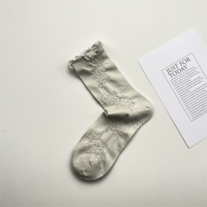 봄과 여름 얇은 어두운 패턴 빈 꽃 중간 양말 일본 스타일 인스타그램 스타일 유행 소녀의 다채로운 작은 꽃 쌓기 양말스토어 가기