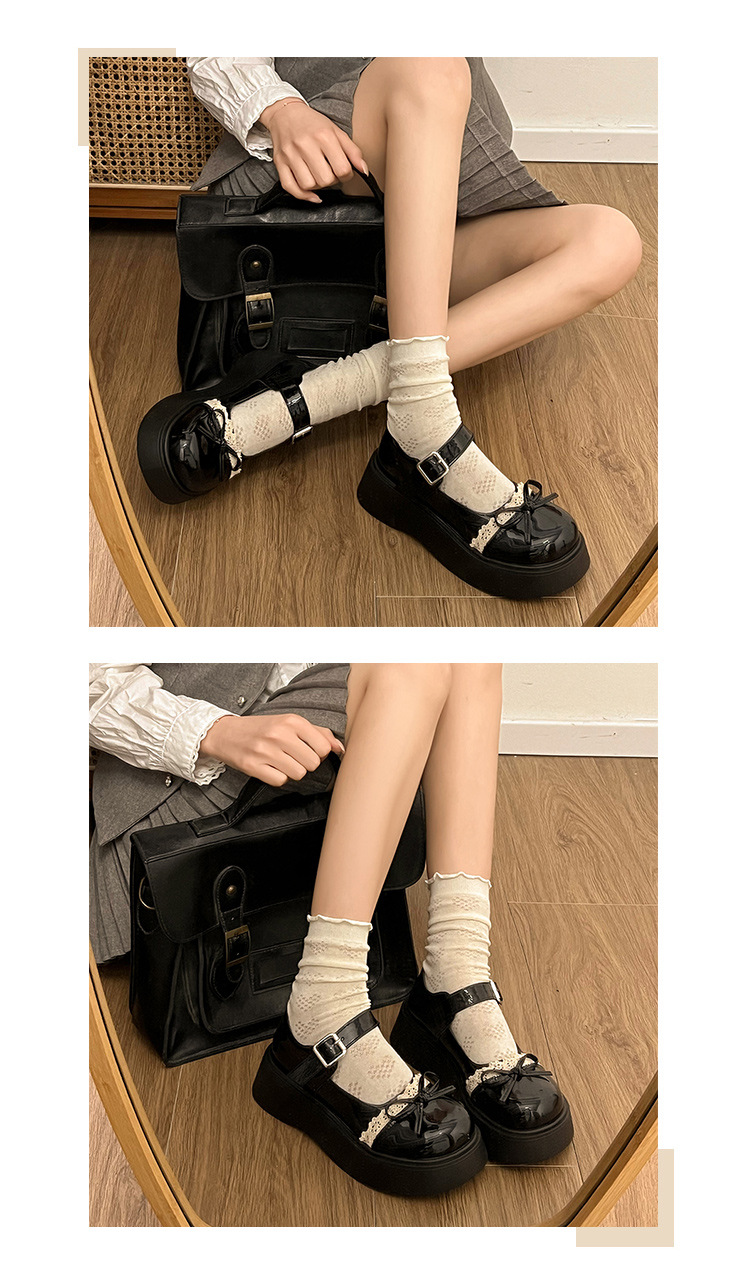 2025 봄과 가을 새로운 활 일본 스타일 플랫폼 플랫폼 작은 가죽 신발 여성 메리 제인 라운드 헤드 스커트 여성 유행 신발