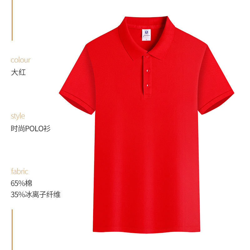 • HT—골드 셔츠 A6 단색 아이스 이온 라펠 반팔 밝은 빨간색