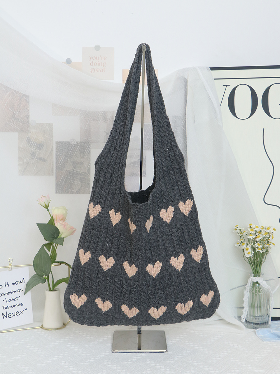 2025 가을 신상 니트 러브 토트백, 심플하고 패셔너블한 니트백, 개성 있는 속이 빈 숄더백스토어 가기