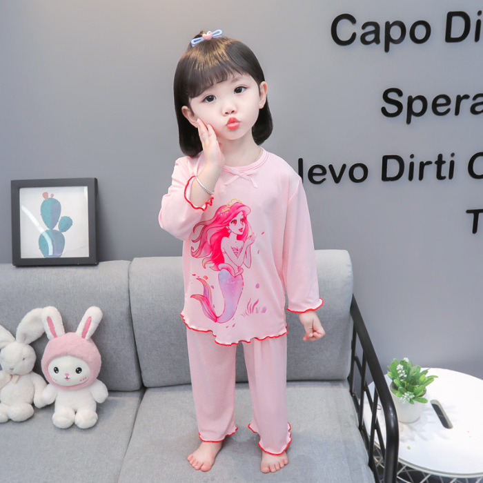 여아 홈 의류 패션 서양 스타일 귀여운 만화 공주 엘사 인어 파자마 2 피스 세트