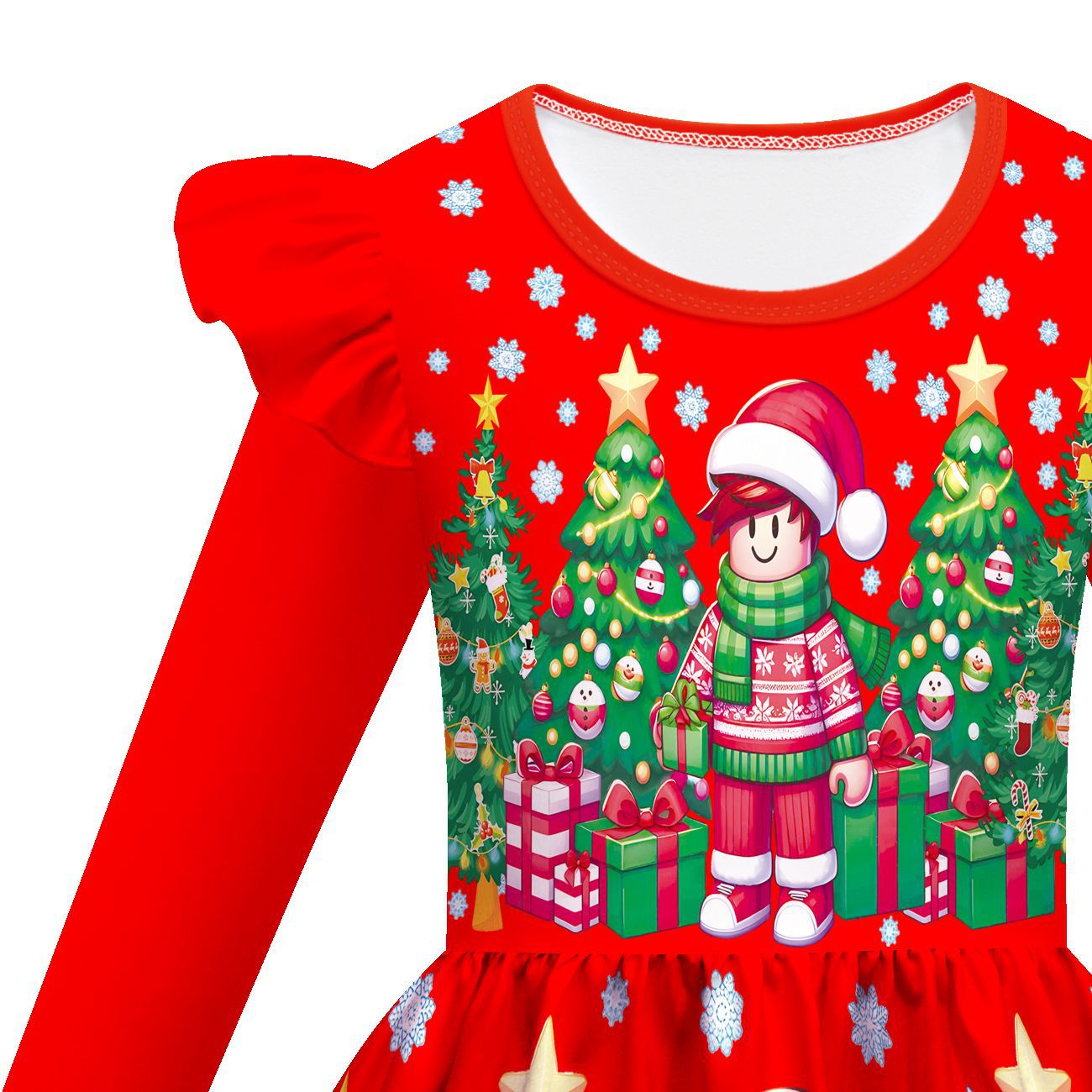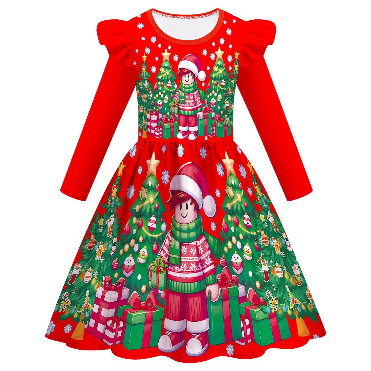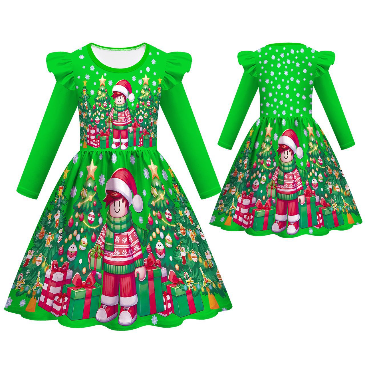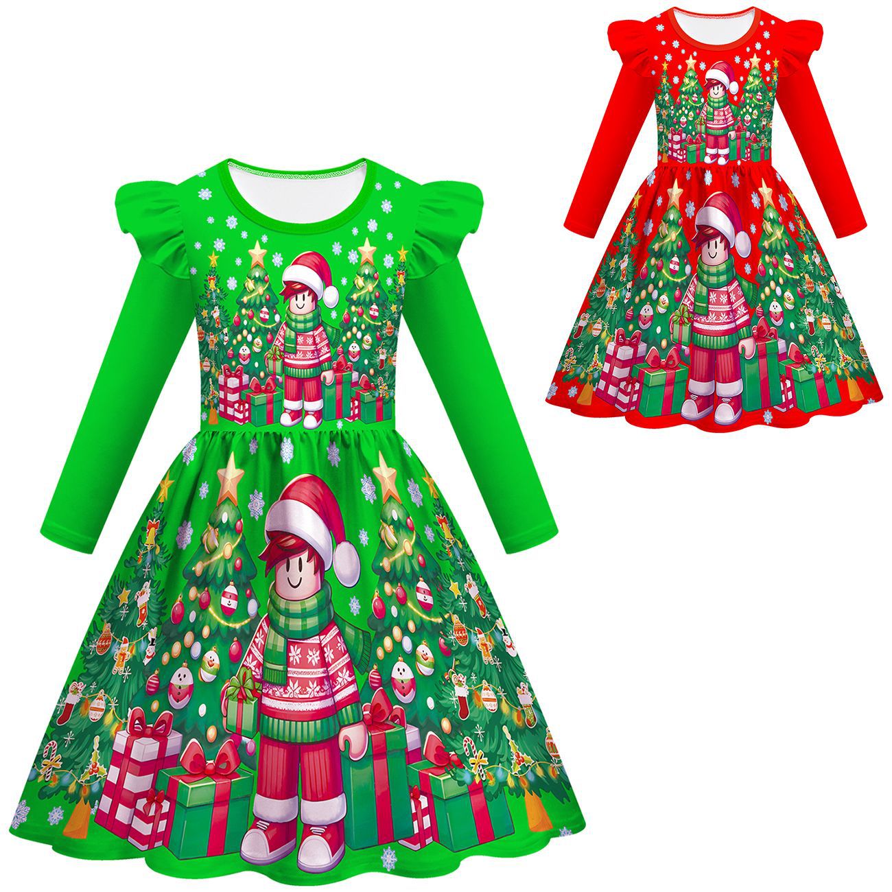 대형 및 중형 어린이 비행 소매 긴 소매 A-라인 원피스 82161 세트 새로운 어린이 원피스 코스프레 크리스마스 공연
