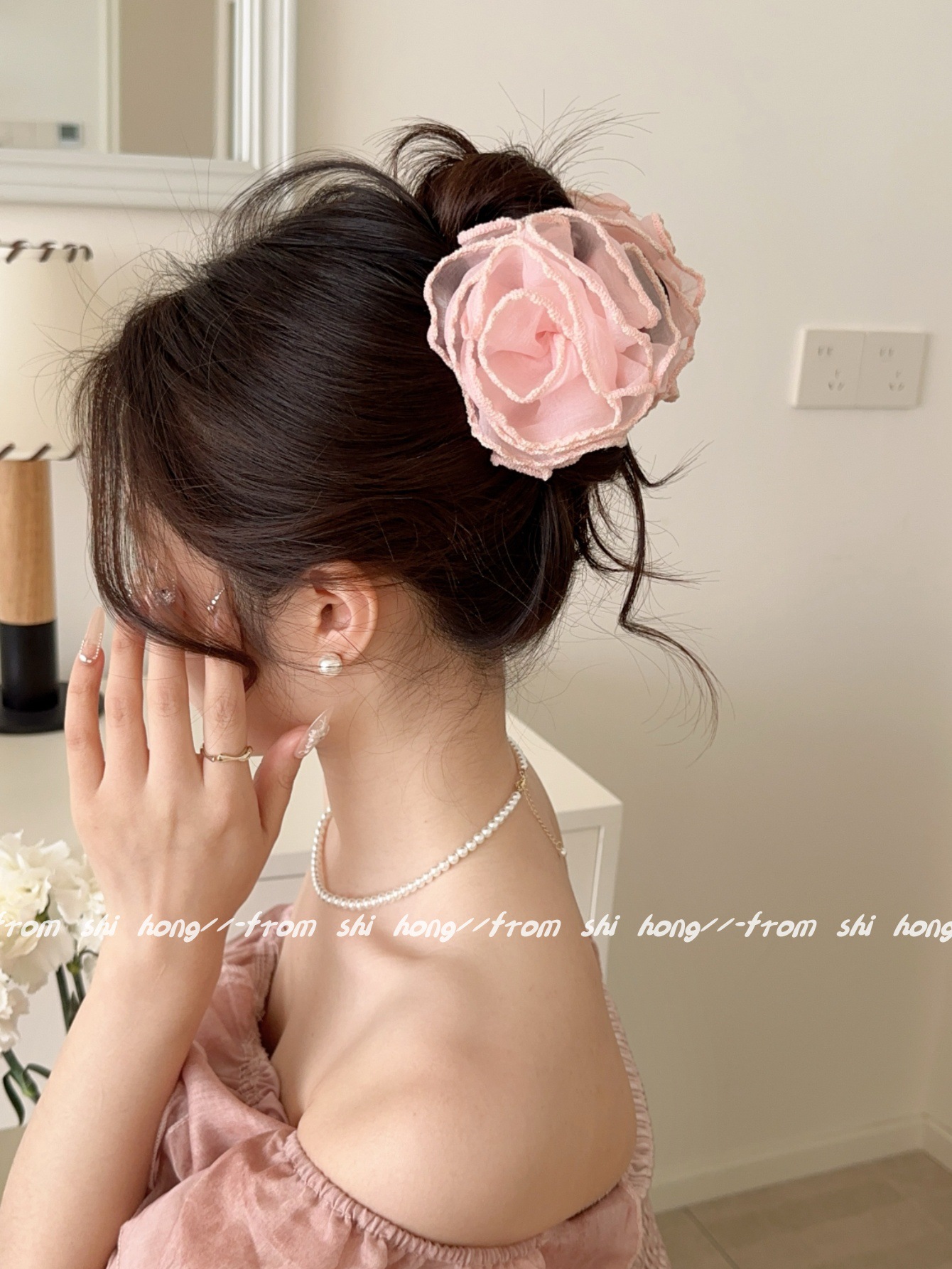 한국 스타일의 우아한 장미 꽃 머리핀 여성 2025 새로운 하이 엔드 헤어 클램프 헤드 플라워 헤드웨어 헤어 액세서리 상어 클립스토어 가기