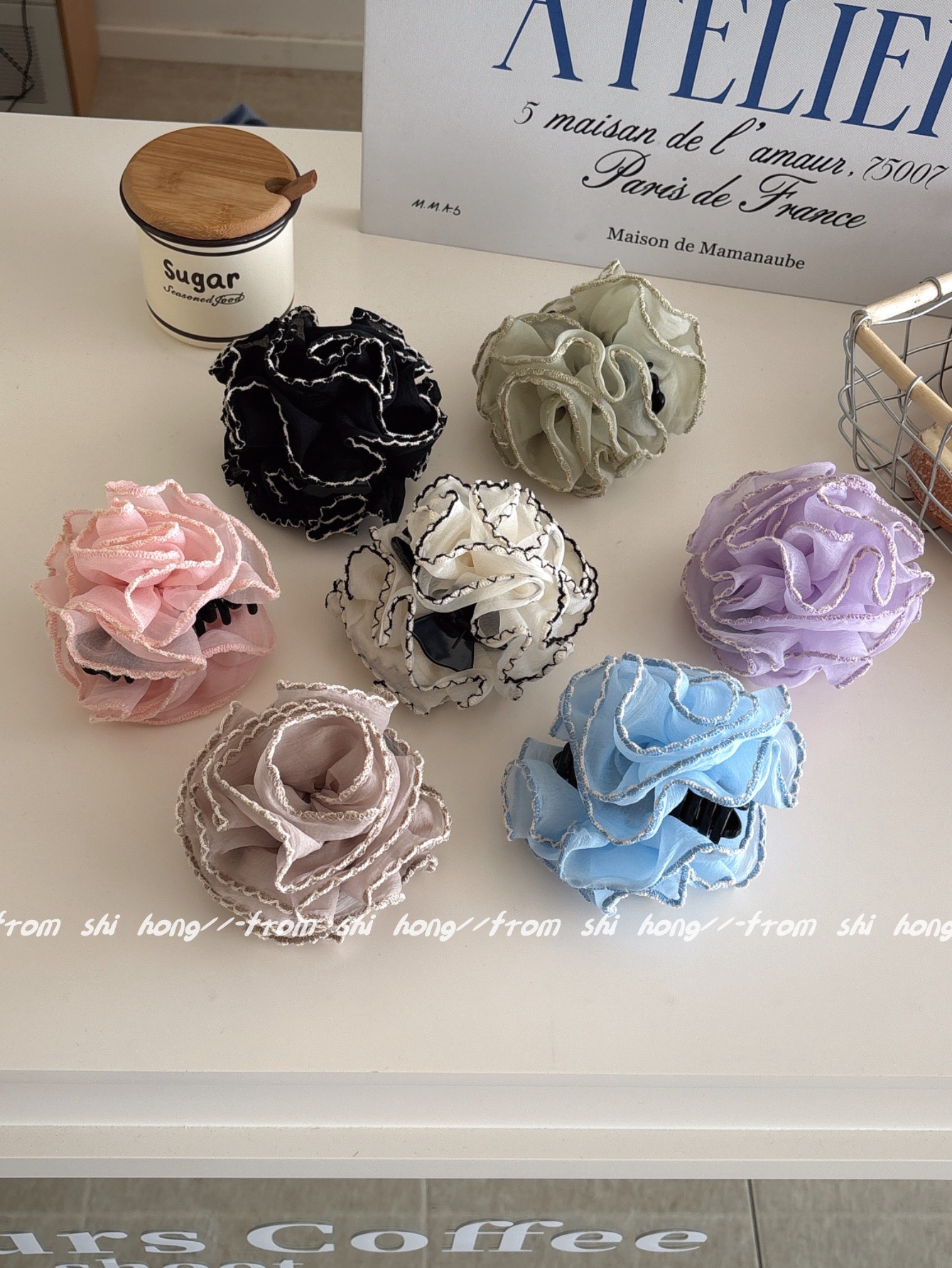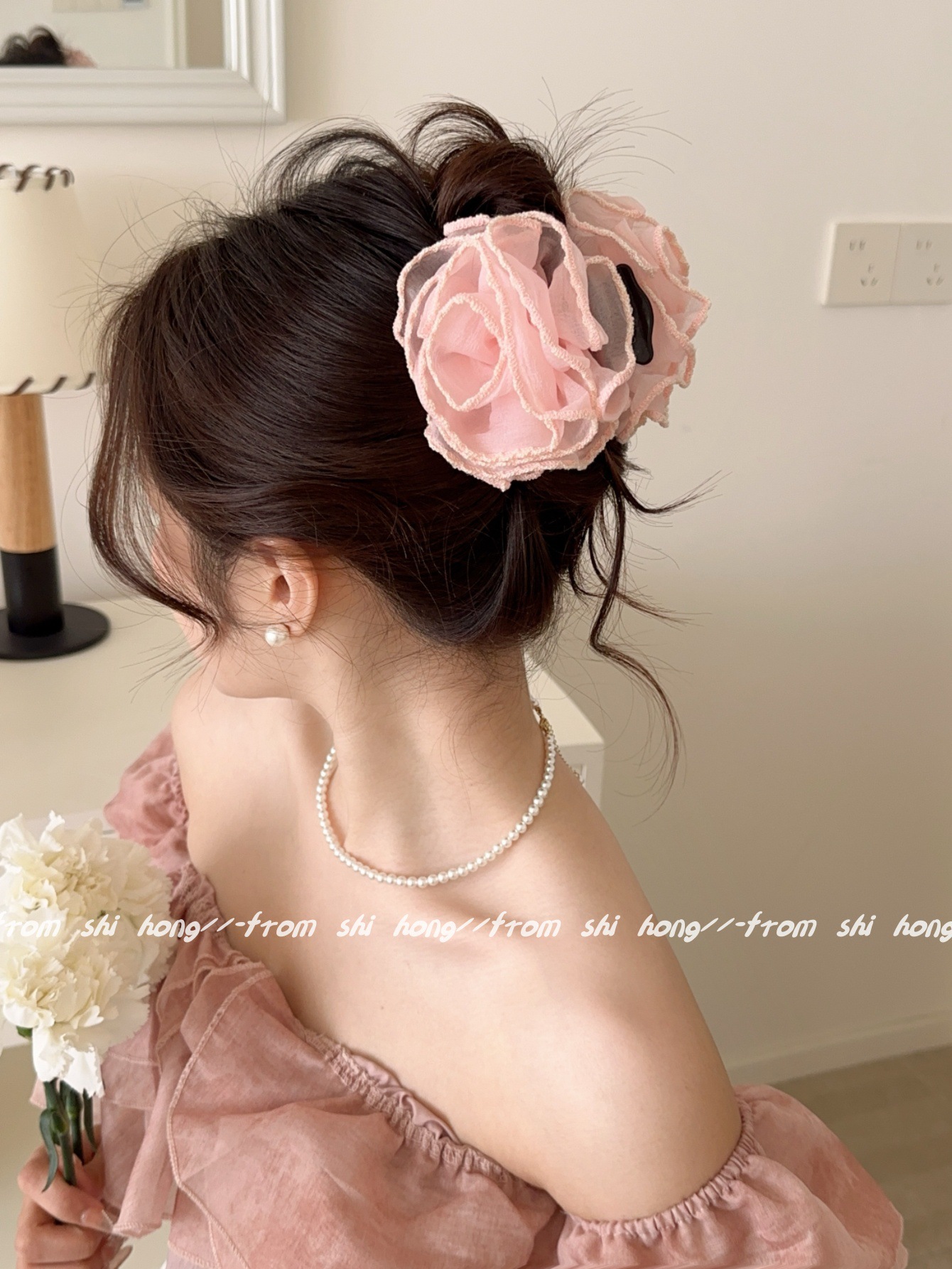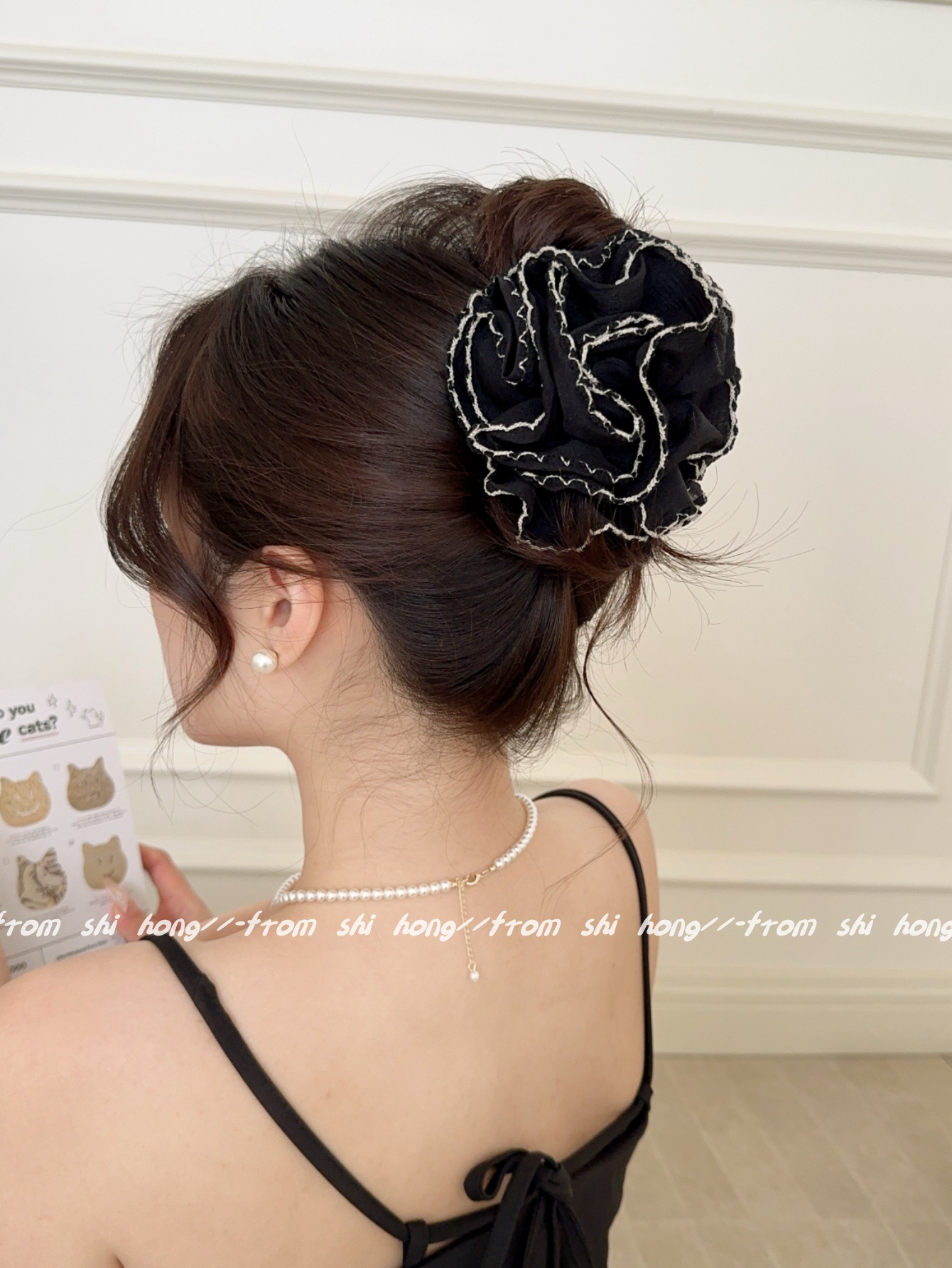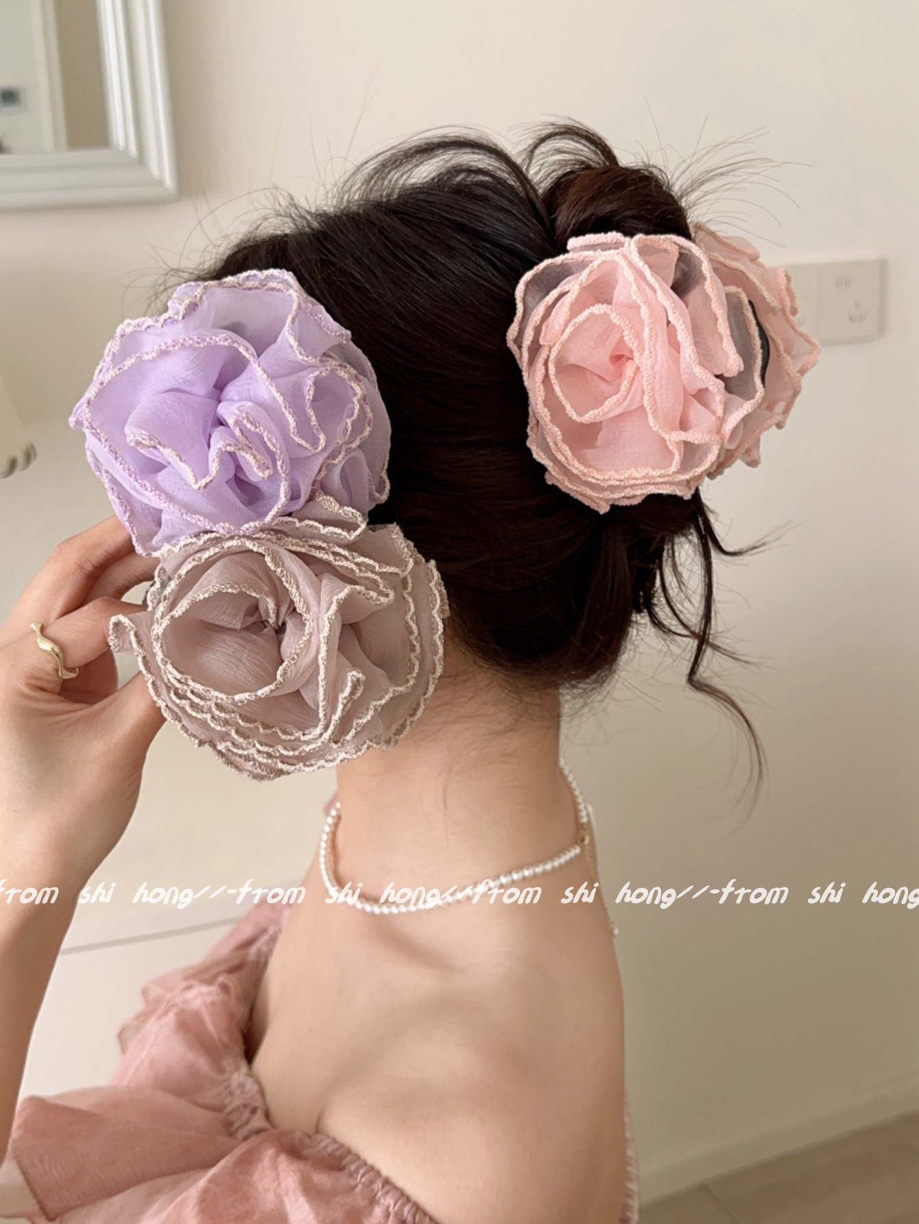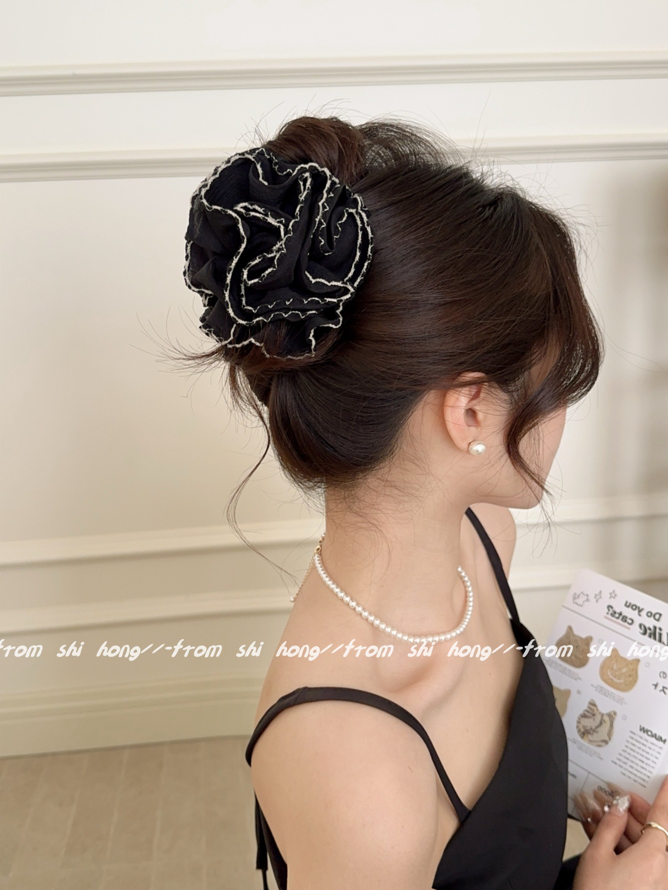 한국 스타일의 우아한 장미 꽃 머리핀 여성 2025 새로운 하이 엔드 헤어 클램프 헤드 플라워 헤드웨어 헤어 액세서리 상어 클립