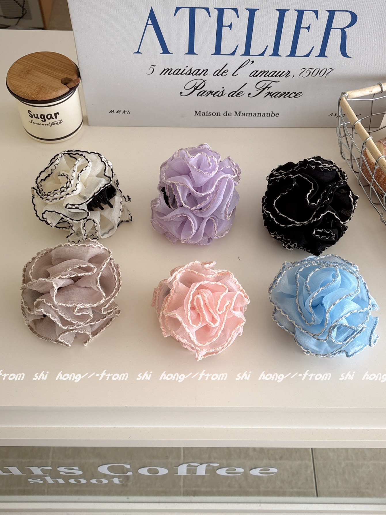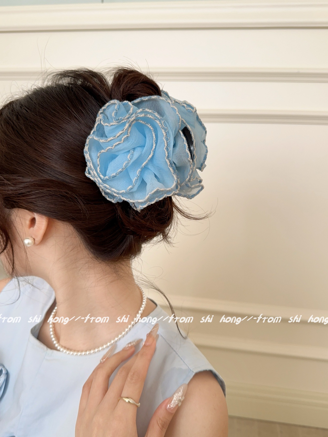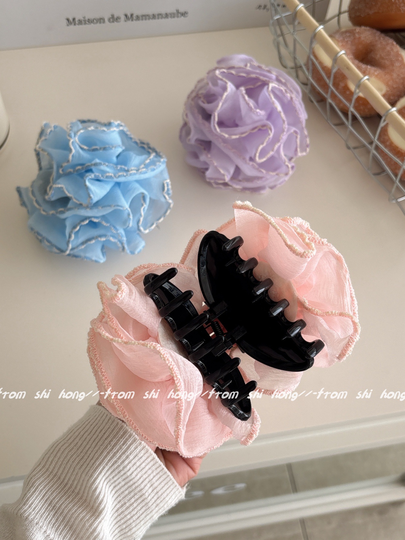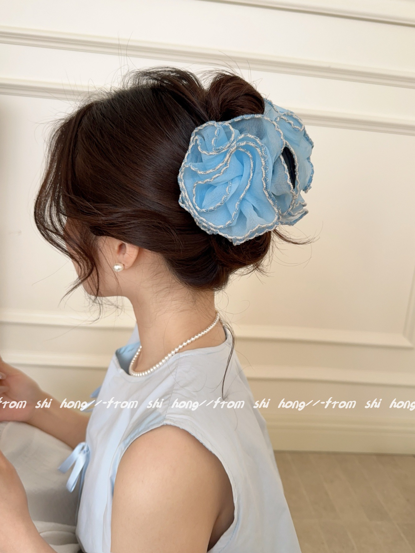 한국 스타일의 우아한 장미 꽃 머리핀 여성 2025 새로운 하이 엔드 헤어 클램프 헤드 플라워 헤드웨어 헤어 액세서리 상어 클립