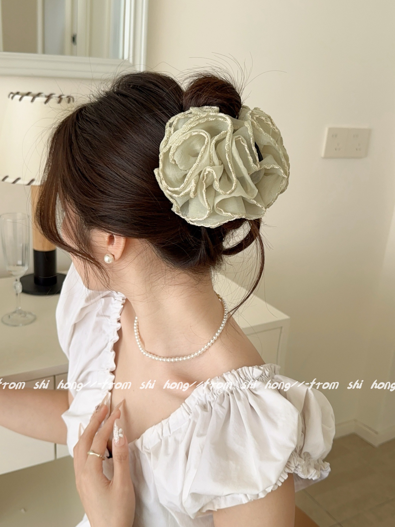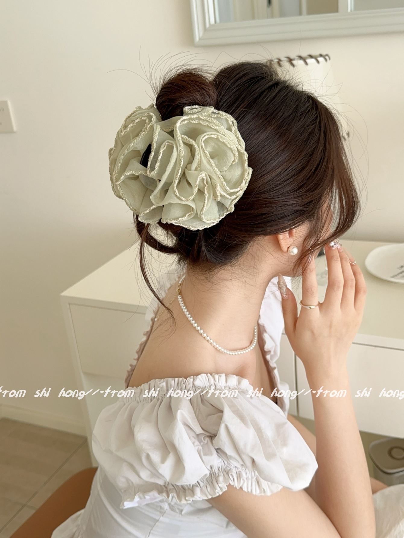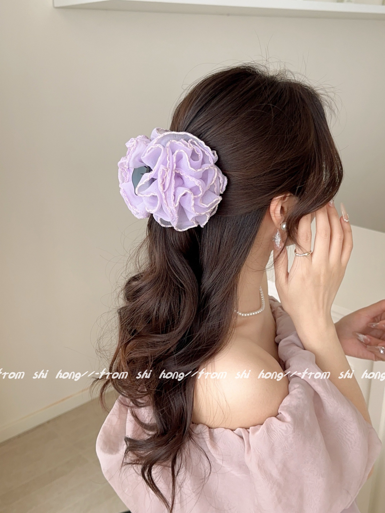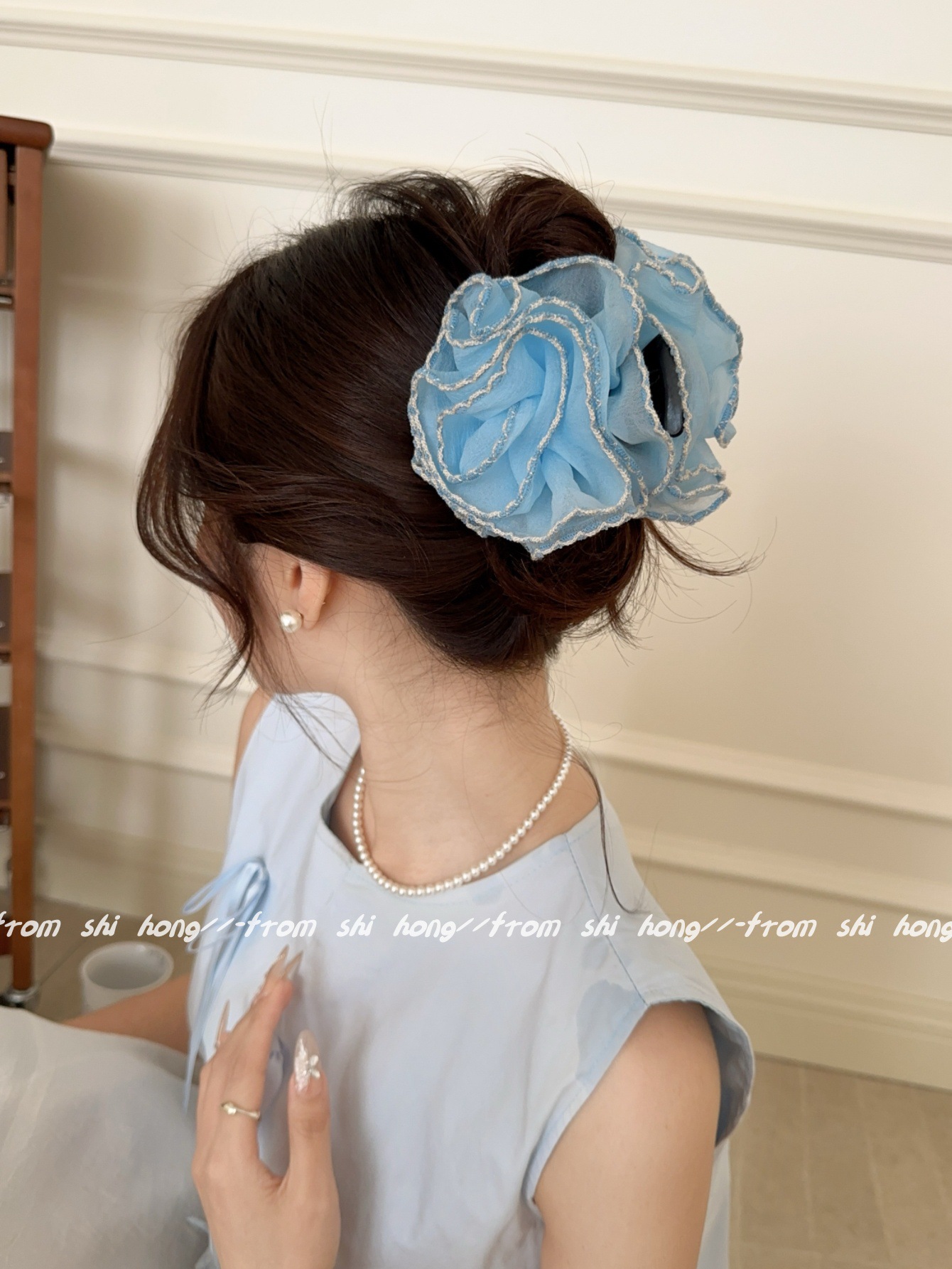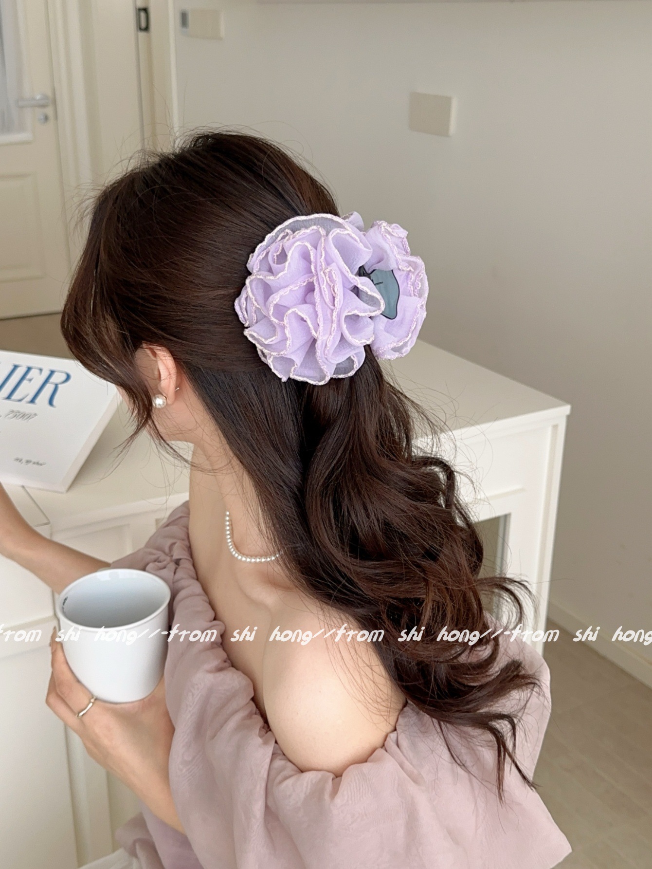 한국 스타일의 우아한 장미 꽃 머리핀 여성 2025 새로운 하이 엔드 헤어 클램프 헤드 플라워 헤드웨어 헤어 액세서리 상어 클립