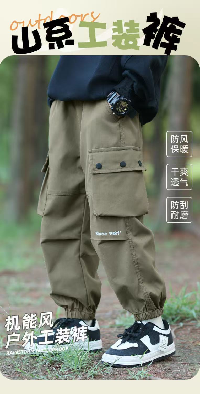소년 쿠션 바지 새로운 도착 2025 봄과 가을 스타일 소년의 대형 어린이 트렌디 바지 올매치 다리 바지
