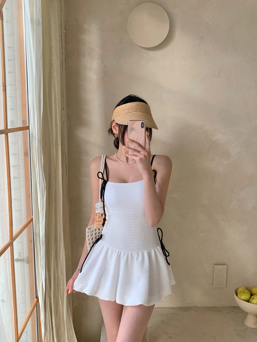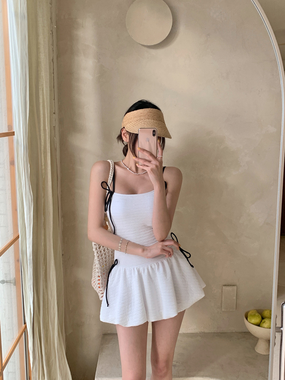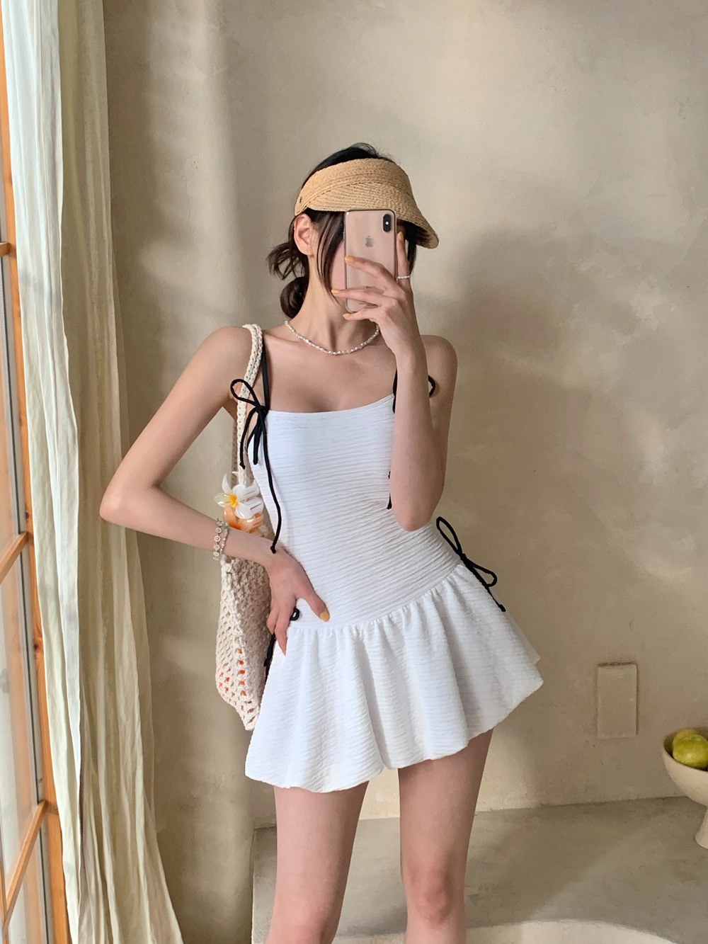 2025 새로운 발레 순수한 욕망 스타일 주름 활 끈 여성 원피스 스커트 온천 휴가 수영복 비키니스토어 가기